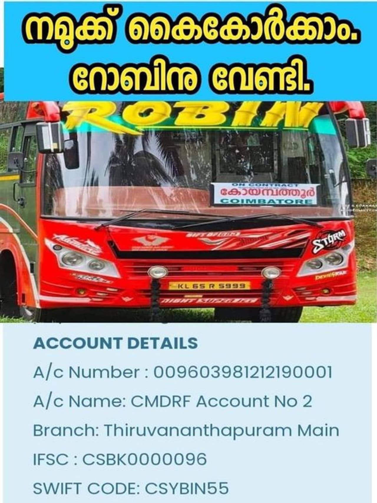 റോബിന് ബസിന് നീതി കിട്ടാന് പണപ്പിരിവ് എന്ന് സാമൂഹ്യമാധ്യമങ്ങളില് പോസ്റ്ററുകള്, രഹസ്യം പുറത്തായി