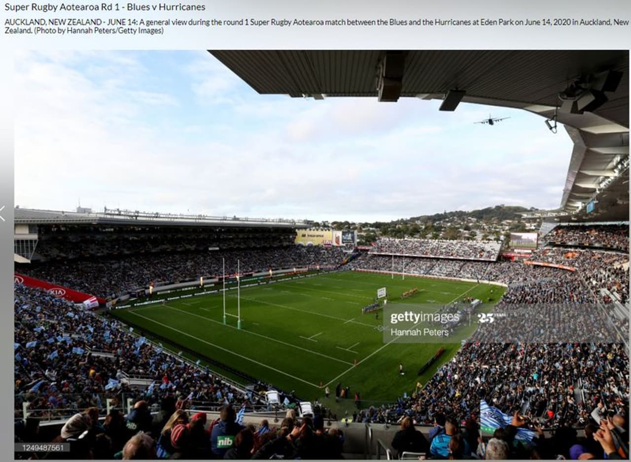 മത്സരത്തിന് വേദിയായ ഈഡന് പാര്ക്കിന്റെ ചിത്രം ഗെറ്റി ഇമേജസ് ലോക മാധ്യമങ്ങള്ക്കായി പങ്കുവെച്ചിരുന്നു. ഗെറ്റിക്കായി ഹന്നാ പീറ്റേഴ്സ് ആണ് ചിത്രം പകര്ത്തിയത്. ഇതിലും കാണാം കാണികളുടെ പെരുപ്പം. ചിത്രത്തിനൊപ്പം നല്കിയിട്ടുള്ള വിവരങ്ങളില് സ്ഥലും തീയതിയും ടീമുകളുടെ പേരും കൃത്യമായി രേഖപ്പെടുത്തിയിട്ടുണ്ട്( ജൂണ് 14, ഈഡന് പാര്ക്ക്, ഓക്ലന്ഡ് ബ്ലൂസ്- വെല്ലിംഗ്ടണ് ഹറികെയ്ന്സ്).