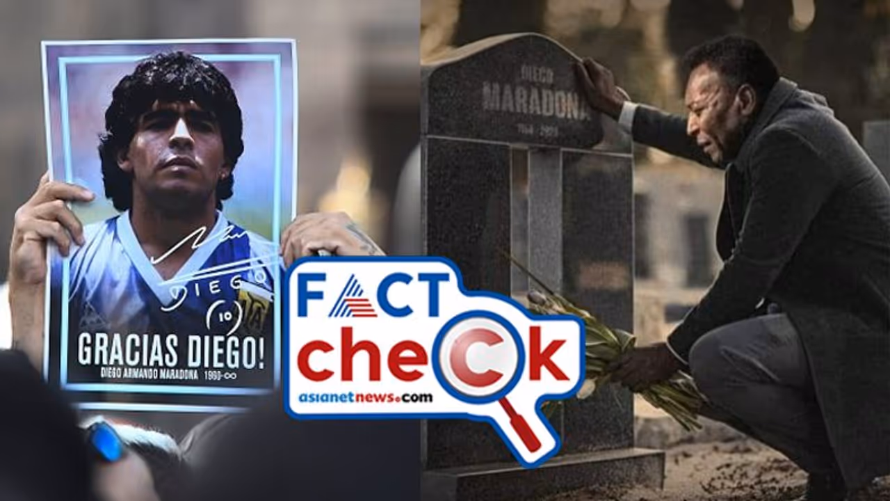 മറഡോണയുടെ കുഴിമാടത്തിനരികെ പൂക്കള് അര്പ്പിക്കുന്ന പെലെയുടെ ചിത്രം വ്യാജമാണ്. മോര്ഫ് ചെയ്ത ചിത്രമാണ് പ്രചരിക്കുന്നത് എന്ന് വ്യക്തമായിട്ടുണ്ട്. മറഡോണയുടെ അന്ത്യകര്മ്മങ്ങളില് പെലെ പങ്കെടുത്തതായി റിപ്പോര്ട്ടുകളുമില്ല.