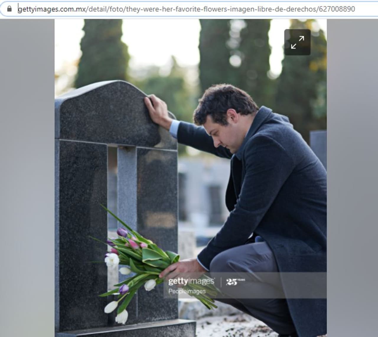 2. ഗെറ്റി ഇമേജസ് പ്രസിദ്ധീകരിച്ച ചിത്രത്തിലും വൈറല് ചിത്രത്തിലും ഒരുപാട് സാമ്യതകള് കാണാം. ഇത് ചിത്രം ഫോട്ടോഷോപ്പാണ് എന്ന് കൂടുതല് തെളിവുകള് നല്കുന്നു. കീശയിലെ എന്തോ വസ്തു, കല്ലറയിലെ അടയാളം, പശ്ചാത്തലത്തിലെ മരങ്ങള്, കൈയിലെ പൂക്കള് എന്നിവയൊക്കെ ഇരു ചിത്രങ്ങളിലും സമാനമാണ്.