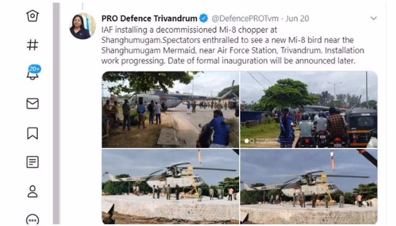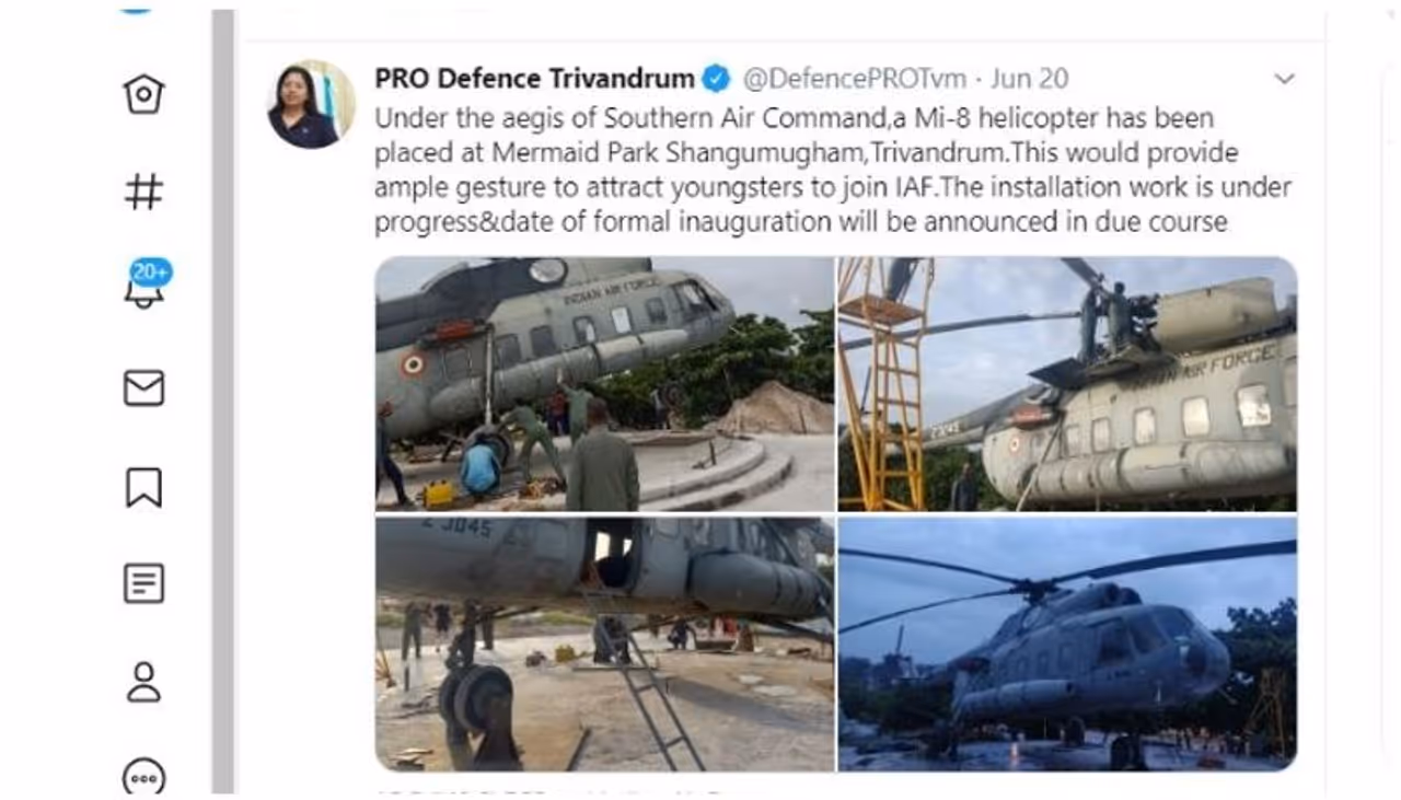 ശംഖുമുഖം മത്സ്യ കന്യകാ പാര്ക്കില് സ്ഥാപിക്കാനായി കൊണ്ടുപോകുന്ന ഡീ കമ്മീഷന് ചെയ്ത എംഐ8 ഹെലികോപ്റ്ററിന്റെ ചിത്രമാണ് വ്യാജ അവകാശവാദങ്ങളോടെ പ്രചരിപ്പിക്കുന്നത്. യുവജനങ്ങളെ സേനയിലേക്ക് ആകര്ഷിക്കുകയെന്ന ലക്ഷ്യത്തോടെ വായുസേന ചെയ്ത നടപടിയായിരുന്നു ഇത്. ശംഖുമുഖത്തെ വായുസേനാ താവളത്തില് നിന്നുമായിരുന്നു ഹെലികോപ്റ്റര് പാര്ക്കിലേക്ക് എത്തിച്ചത്. ഇന്സ്റ്റലേഷന് എത്തിച്ച ഹെലികോപ്റ്റര് റോഡിലൂടെയായിരുന്നു ശംഖുമുഖത്തെ മത്സ്യകന്യകാ പാര്ക്കിലെത്തിച്ചത്. ജൂണ് 20നാണ് എംഐ ഹെലികോപ്റ്റര് ശംഖുമുഖത്ത് എത്തിച്ചത്.
