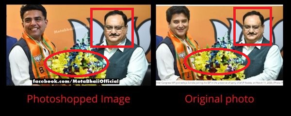 ഈ ചിത്രത്തിലെ പശ്ചാത്തലവും ബൊക്കെയും ജെപി നദ്ദയുടെ മുഖഭാവവും ഒന്നാണ്. വ്യാപക പ്രചാരം നേടിയ സച്ചിന് പൈലറ്റിന്റെ ചിത്രത്തില് സച്ചിന്റെ മുഖത്തിന്റെ ആനുപാതികതയിലും വ്യത്യാസം കണ്ടെത്താനായി.