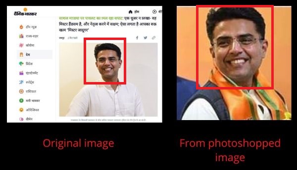 മറ്റൊരു ചിത്രത്തില് നിന്ന് സച്ചിന്റെ മുഖം ക്രോപ്പ് ചെയ്ത് സിന്ധ്യയുടെ മുഖത്തിന് പകരം വച്ചാണ് വ്യാജ ചിത്രമുണ്ടാക്കിയത്.