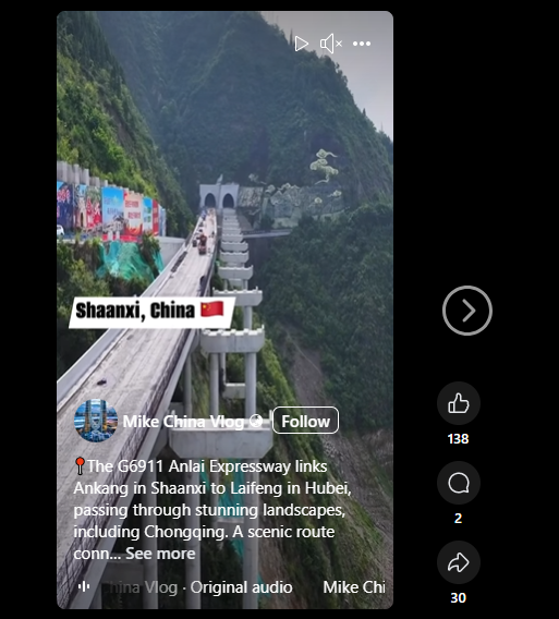 കശ്മീരിലെ പുതിയ റോഡ് നിര്മാണം എന്ന തരത്തില് സോഷ്യല് മീഡിയയില് പ്രചരിക്കുന്ന വീഡിയോ സത്യത്തില് ഇന്ത്യയില് ഉള്ളത് പോലുമല്ല. ചൈനയില് G6911 Ankang-Laifeng എന്ന എക്സ്പ്രസ്വേ നിര്മിക്കുന്ന ദൃശ്യങ്ങളാണിതെന്ന് ഇന്ത്യാ ടുഡേയുടെ ഫാക്ട് ചെക്ക് വാര്ത്തയില് പറയുന്നു. ഇന്ത്യയില് പ്രചരിക്കുന്ന വീഡിയോയുടെ മറ്റൊരു ആംഗിള് എഫ്ബിയില് Mike China Vlogs എന്ന അക്കൗണ്ടില് കാണാം. ലിങ്ക്ഡ്ഇന്നില് സിവില് എഞ്ചിനീയര്സ് വേള്ഡ് എന്ന അക്കൗണ്ടില് നിന്നും വീഡിയോ പങ്കുവെച്ചിട്ടുണ്ട്.