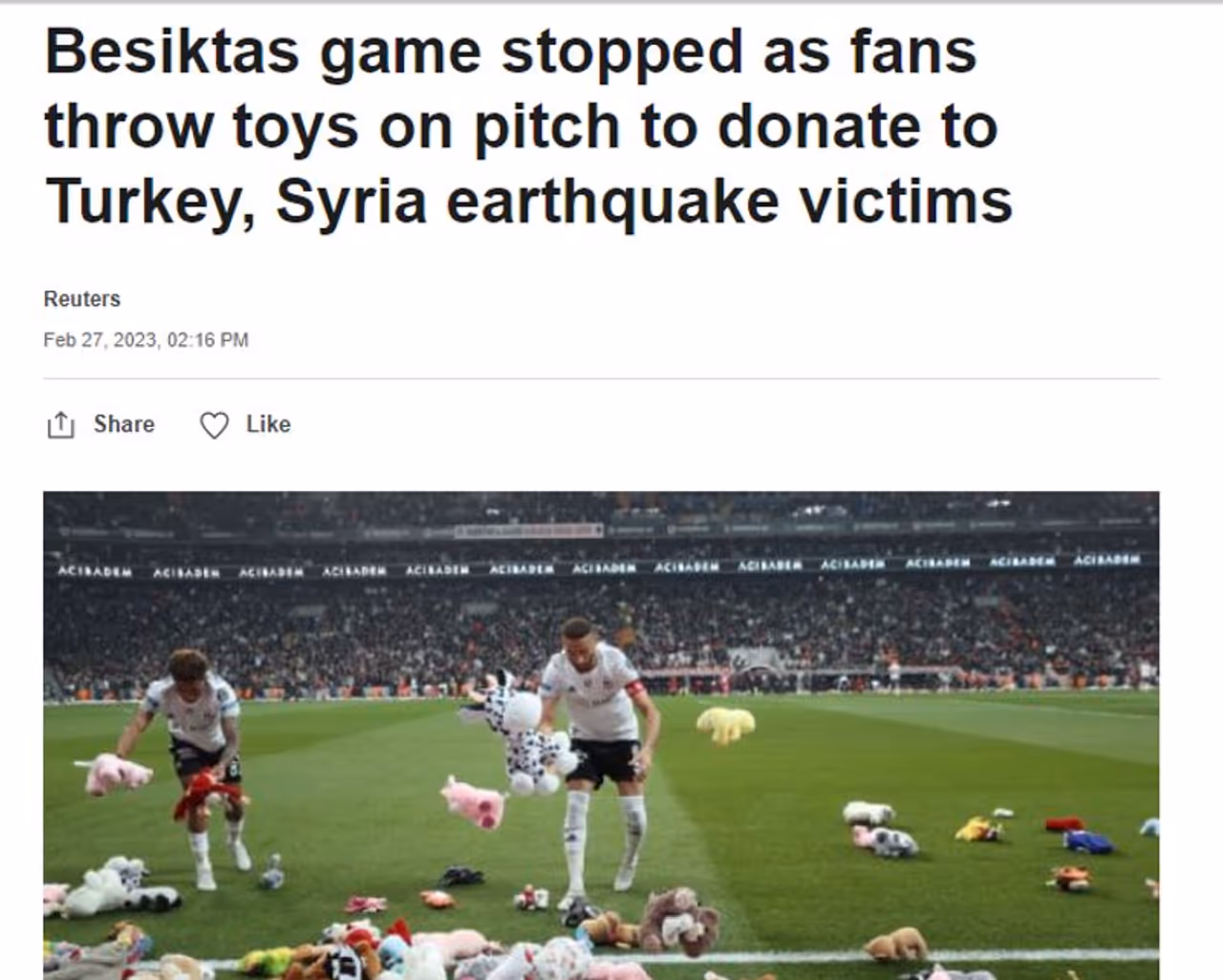 യുദ്ധം ജീവിതം തകര്ത്ത പലസ്തീനിലെ കുട്ടികള്ക്ക് സമ്മാനിക്കാന് ഫുട്ബോള് ആരാധകര് കളിപ്പാവകള് നല്കുന്നതായുള്ള വീഡിയോയ്ക്ക് നിലവിലെ ഇസ്രയേല്-ഹമാസ് സംഘര്ഷവുമായി ബന്ധമൊന്നുമില്ല. തുര്ക്കിയില് നിന്ന് ഈവര്ഷാദ്യമുള്ള വീഡിയോയാണ് പലസ്തീനുമായി തെറ്റായി ബന്ധിപ്പിച്ച് ഇപ്പോള് പലരും പ്രചരിപ്പിക്കുന്നത്.