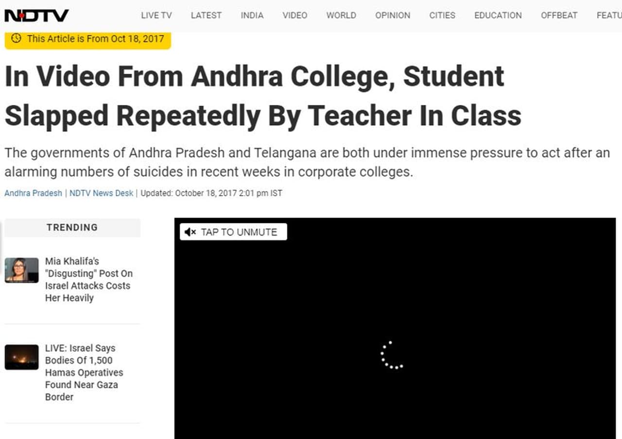 വീഡിയോ കേരളത്തിന് പുറത്തുനിന്നുള്ളതാണ് എന്ന് മണ്ണാര്ക്കാട് എംഎല്എ പറയുന്നതിനാല് തന്നെ ഈ ദൃശ്യത്തിന്റെ ഉറവിടം വിശദമായി പരിശോധിച്ചു. വീഡിയോ റിവേഴ്സ് ഇമേജ് സെര്ച്ചിന് വിധേയമാക്കിയതോടെ ഉറവിടം കണ്ടെത്താനായി. ഈ സംഭവത്തെ കുറിച്ച് ദേശീയ മാധ്യമമായ എന്ഡിടിവി മുമ്പ് വാര്ത്ത നല്കിയിട്ടുണ്ട്. ആന്ധ്രാപ്രദേശിലെ സ്വകാര്യ സ്കൂളില് നടന്ന സംഭവമാണിത് എന്നാണ് എന്ഡിടിവിയുടെ വാര്ത്തയില് പറയുന്നത്. 2017 ഒക്ടോബര് 18നാണ് വാര്ത്ത പ്രസിദ്ധീകരിച്ചിരിക്കുന്നത്.