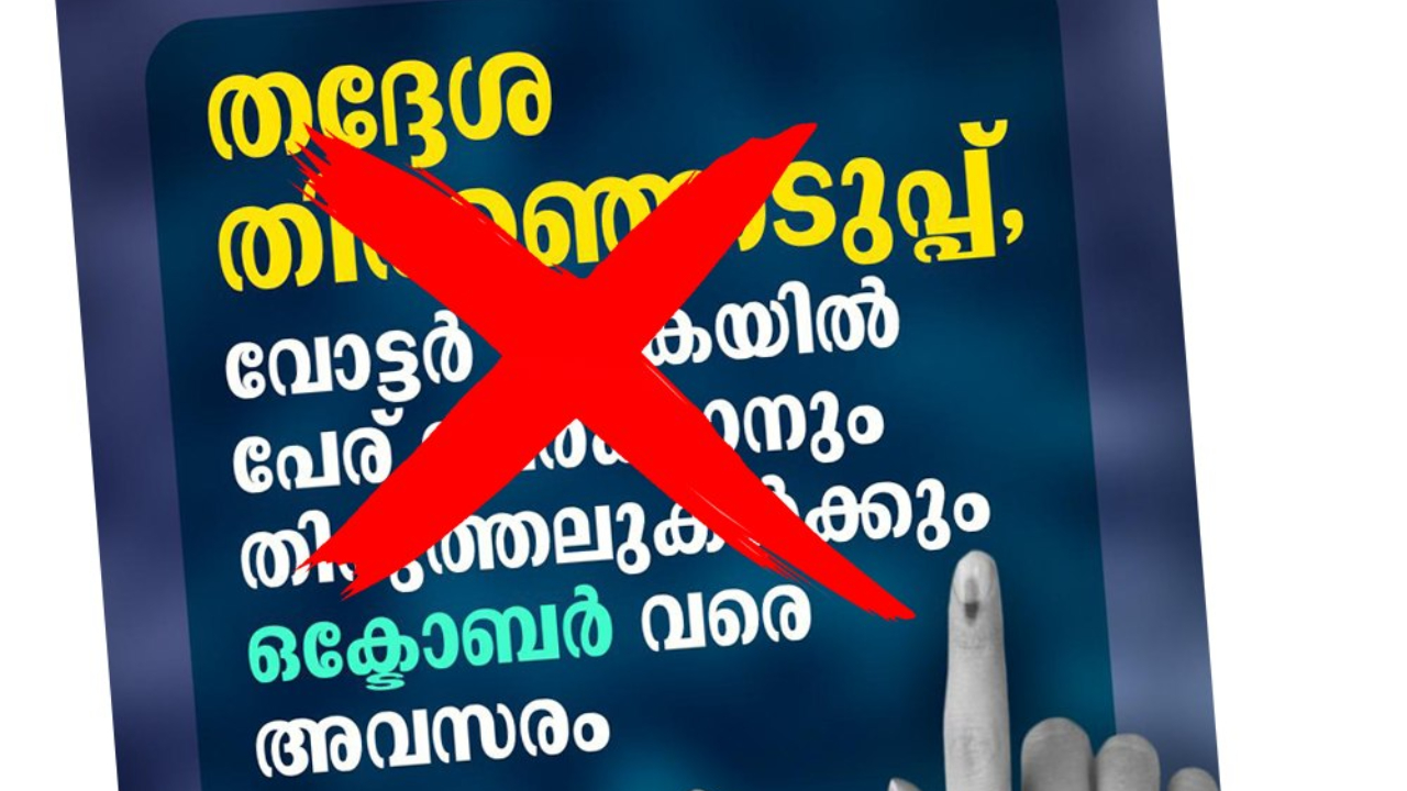 മറ്റൊരു വ്യാജ പ്രചാരണം കേരളത്തില് നടക്കാനിരിക്കുന്ന 'തദ്ദേശസ്വയംഭരണ തിരഞ്ഞെടുപ്പിന്റെ വോട്ടര് പട്ടികയില് പേര് ചേര്ക്കാനും തിരുത്തലുകള്ക്കും ഒക്ടോബര് വരെ അവസരം' എന്നതായിരുന്നു. എന്നാല് സോഷ്യല് മീഡിയയില് പ്രചരിക്കുന്ന വാർത്തകൾ വ്യാജമാണെന്ന് സംസ്ഥാന തിരഞ്ഞെടുപ്പ് കമ്മീഷൻ അറിയിച്ചു. 'തദ്ദേശസ്വയംഭരണ തിരഞ്ഞെടുപ്പിനുള്ള അന്തിമ വോട്ടര് പട്ടിക 2025 സെപ്റ്റംബര് രണ്ടിന് പ്രസിദ്ധീകരിച്ചിട്ടുണ്ട്. വോട്ടർ പട്ടിക വീണ്ടും പുതുക്കുന്നതിനുള്ള തീരുമാനമൊന്നും കമ്മീഷൻ ഇതുവരെ എടുത്തിട്ടില്ല. വോട്ടർ പട്ടിക പുതുക്കുന്നതിന് തീരുമാനിക്കുകയാണെങ്കിൽ, ആ വിവരം കമ്മീഷൻ ഔദ്യോഗികമായി അറിയിക്കുന്നതാണ്. തിരഞ്ഞെടുപ്പ് സംബന്ധിച്ചും, വോട്ടര് പട്ടിക പുതുക്കല് സംബന്ധിച്ചുമുള്ള വിവരങ്ങള്ക്ക് സംസ്ഥാന തിരഞ്ഞെടുപ്പ് കമ്മീഷന്റെ വെബ്സൈറ്റിനെയോ സോഷ്യല് മീഡിയ പേജുകളെയോ മാത്രം ആശ്രയിക്കണം' എന്നും സംസ്ഥാന തിരഞ്ഞെടുപ്പ് കമ്മീഷന് വ്യക്തമാക്കി.
