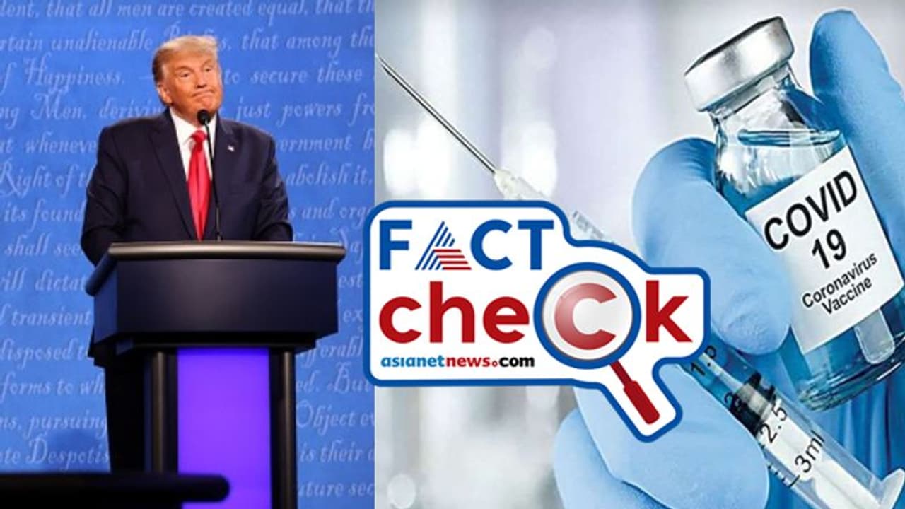 അമേരിക്കൻ പ്രസിഡന്റ് തെരഞ്ഞെടുപ്പിന് മുന്നോടിയായി നടന്ന സംവാദത്തിനിടെ കൊവിഡ് വാക്സിന് തയ്യാറായതായുള്ള ഡൊണാള്ഡ് ട്രംപിന്റെ വാദത്തിലെ വ്സതുതയെന്താണ്. നമ്മുക്കൊരു വാക്സിനുണ്ട് അത് വരികയാണ് എന്നായിരുന്നു ഡൊണാള്ഡ് ട്രംപിന്റെ പ്രസ്താവന.
