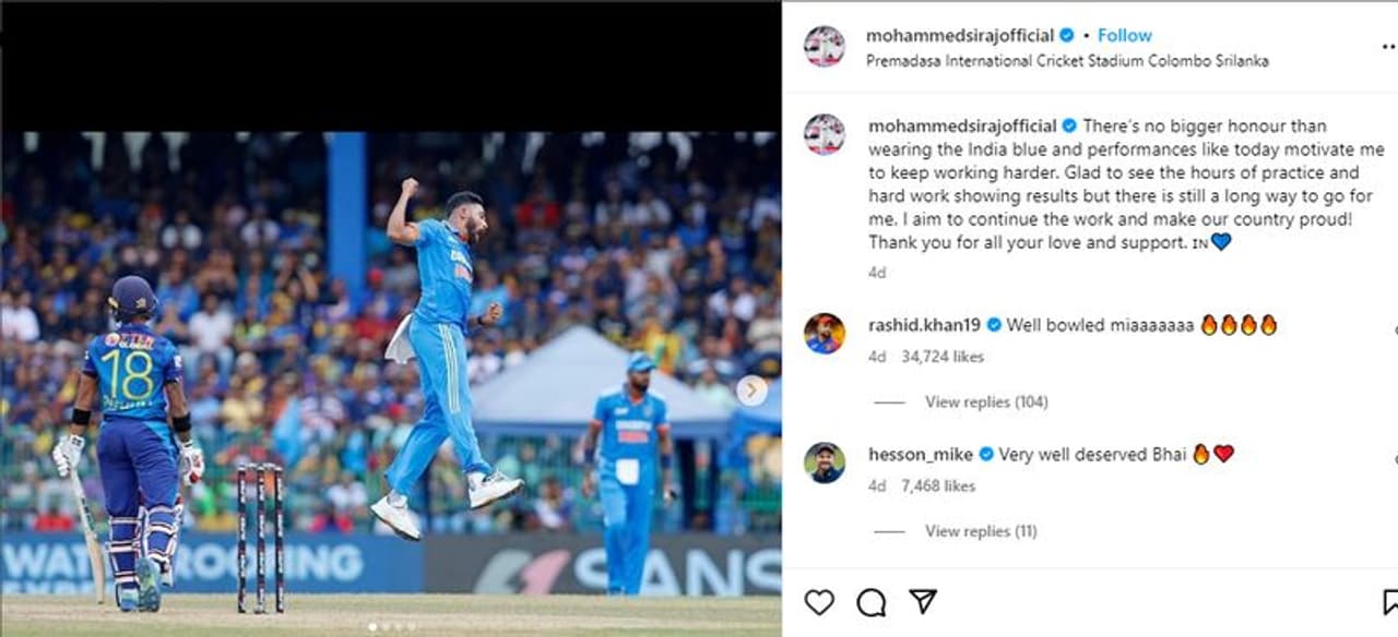ലങ്കയുടെ ആറ് വിക്കറ്റുകളുമായി മുഹമ്മദ് സിറാജ് കത്തിപ്പടര്ന്നതിന് പിന്നാലെയായിരുന്നു സാമൂഹ്യമാധ്യമങ്ങളില് ആ ചിത്രമെത്തിയത്