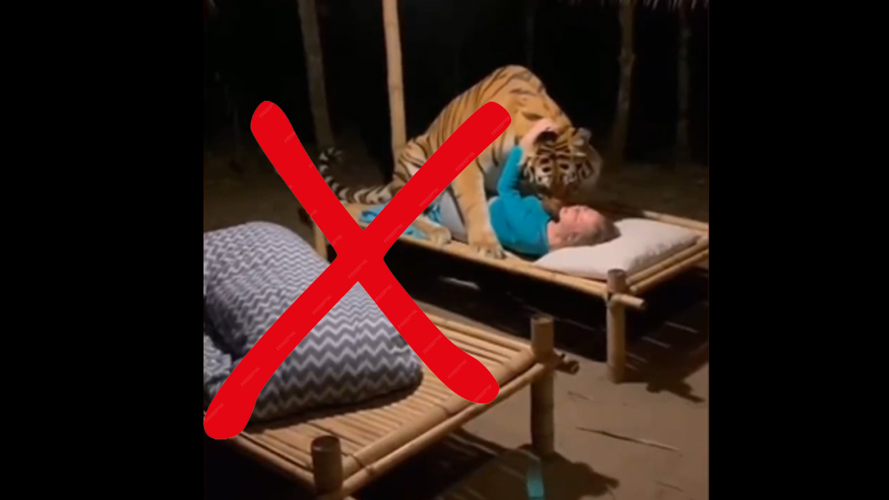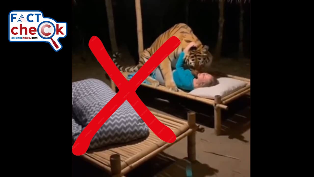ഒരു കടുവയും യുവതിയും തമ്മിലുള്ള സ്നേഹബന്ധത്തിന്റെ കഥ പറയുന്ന വീഡിയോ എഐ ടൂളുകളുടെ സൃഷ്ടിയാണ്, ഈ വീഡിയോ യഥാര്ഥമല്ല.
