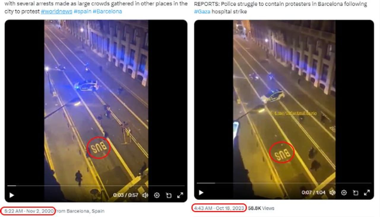 ദൃശ്യം പഴയതാണ് എന്ന് ട്വീറ്റുകള്ക്ക് താഴെ നിരവധി ആളുകള് കമന്റ് രേഖപ്പെടുത്തിയിട്ടുണ്ട് എന്നതിനാല് വീഡിയോ വിശദ പരിശോധനയ്ക്ക് ഏഷ്യാനെറ്റ് ന്യൂസ് ഓണ്ലൈന് ഫാക്ട് ചെക്ക് ടീം വിധേയമാക്കി. വീഡിയോയുടെ ഫ്രെയിമുകള് റിവേഴ്സ് ഇമേജ് സെര്ച്ചിന് വിധേയമാക്കിയപ്പോള് ഈ അടുത്ത ദിവസങ്ങളില് നിരവധി പേര് സമാന വീഡിയോ ട്വീറ്റ് ചെയ്തിട്ടുള്ളതായി കണ്ടു. ലിങ്ക് 1, 2, 3, 4, 5. ബാഴ്സലോണയില് പലസ്തീന് അനുകൂലികളും പൊലീസും തമ്മില് നടന്ന സംഘര്ഷം എന്നാണ് എല്ലാ ട്വീറ്റുകളിലും പറയുന്നത്. ഇതോടൊപ്പം 2020 നവംബര് 2ന്, അതായത് മൂന്ന് വര്ഷം മുമ്പുള്ള ഒരു ട്വീറ്റും വീഡിയോ സഹിതം കണ്ടെത്താനായി.
