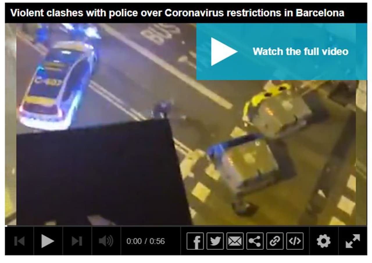 വീഡിയോ പഴയതാണ് എന്ന് മുകളില് പറഞ്ഞ 2020ലെ ട്വീറ്റില് നിന്ന് ഉറപ്പായെങ്കിലും കൊവിഡ് ലോക്ക്ഡൗണുമായി ബന്ധപ്പെട്ട് ബാഴ്സലോണയില് നിന്നുള്ളതാണോ എന്നുറപ്പിക്കാന് കൂടുതല് പരിശോധനകള് നടത്തി. വീഡിയോ കൊവിഡ് കാല ബാഴ്സലോണയില് നിന്നുള്ളതാണ് എന്ന് കീവേഡ് സെര്ച്ചില് കണ്ടെത്താനായി. പലസ്തീന് അനുകൂലികളുടെ പ്രതിഷേധം എന്ന പേരില് ഇപ്പോള് പ്രചരിക്കുന്ന വീഡിയോ സഹിതം 2020 നവംബര് രണ്ടിന് ഡെയ്ലി മെയില് വാര്ത്ത നല്കിയത് കണ്ടെത്തിയതോടെയാണ് വീഡിയോയുടെ ആധികാരികത സ്ഥിരീകരിച്ചത്. ബാഴ്സലോണയില് ലോക്ക്ഡൗണ് നിയന്ത്രണങ്ങളെ എതിര്ക്കുന്നവരും പൊലീസും തമ്മിലുള്ള സംഘര്ഷമാണിത് എന്ന് ഡെയ്ലി മെയിലിന്റെ വാര്ത്തയില് കൃത്യമായി പറയുന്നു.