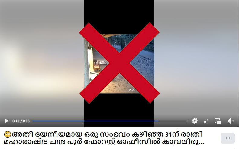 ഇതേ വീഡിയോ'അതീദയനീയമായ ഒരു സംഭവം കഴിഞ്ഞ 31ന് രാത്രി മഹാരാഷ്ട്ര ചന്ദ്രപൂർ ഫോറസ്റ്റ് ഓഫീസിൽ കാവലിരുന്ന വാച്ചറെ പുലി പിടിച്ചുകൊണ്ടുപോകുന്ന രംഗം'- എന്ന മലയാളം കുറിപ്പോടെ കേരളത്തിലും പ്രചരിക്കുന്നതായി കാണാം.
