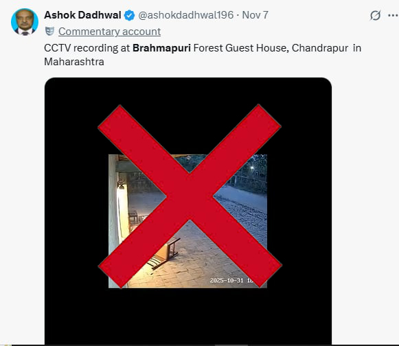 വൈറല് വീഡിയോ എക്സില് നിരവധി പേര് പോസ്റ്റ് ചെയ്തത് പരിശോധിച്ചപ്പോള്, പ്രസ് ഇന്ഫര്മേഷന് ബ്യൂറോയുടെ മഹാരാഷ്ട്ര വിഭാഗം നവംബര് ഏഴിന് ചെയ്ത ഒരു ട്വീറ്റ് കാണാനായി. ചന്ദ്രപൂര് ജില്ലയിലെ ഫോസ്റ്റ് ഗസ്റ്റ് ഹൗസിലെ സിസിടിവി ക്യാമറയില് പതിഞ്ഞ ദൃശ്യങ്ങള് എന്ന പേരില് അനവധി പേര് എക്സില് പോസ്റ്റ് ചെയ്യുന്ന വീഡിയോ വ്യാജമാണെന്ന് പിഐബി മഹാരാഷ്ട്ര വ്യക്തമാക്കുന്നു. വൈറല് വീഡിയോയിലുള്ളത് സിസിടിവി ദൃശ്യങ്ങളല്ലെന്നും എഐ ഉപയോഗിച്ച് രൂപമാറ്റം വരുത്തിയ വീഡിയോയാണ് എന്നും പിഐബി മഹാരാഷ്ട്ര അറിയിച്ചു.