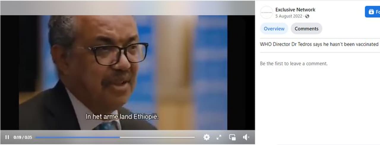 ലോകാരോഗ്യ സംഘടയുടെ തലവന് ടെഡ്രോസ് അധാനോം ഗെബ്രിയേസസ് കൊവിഡ് വാക്സീന് എടുത്തില്ല എന്ന് പറഞ്ഞതായാണ് വീഡിയോ വഴിയുള്ള പ്രചാരണം. ടെഡ്രോസിന്റെ വീഡിയോ പലരും ട്വിറ്ററില് പങ്കുവെച്ചിട്ടുണ്ട്.