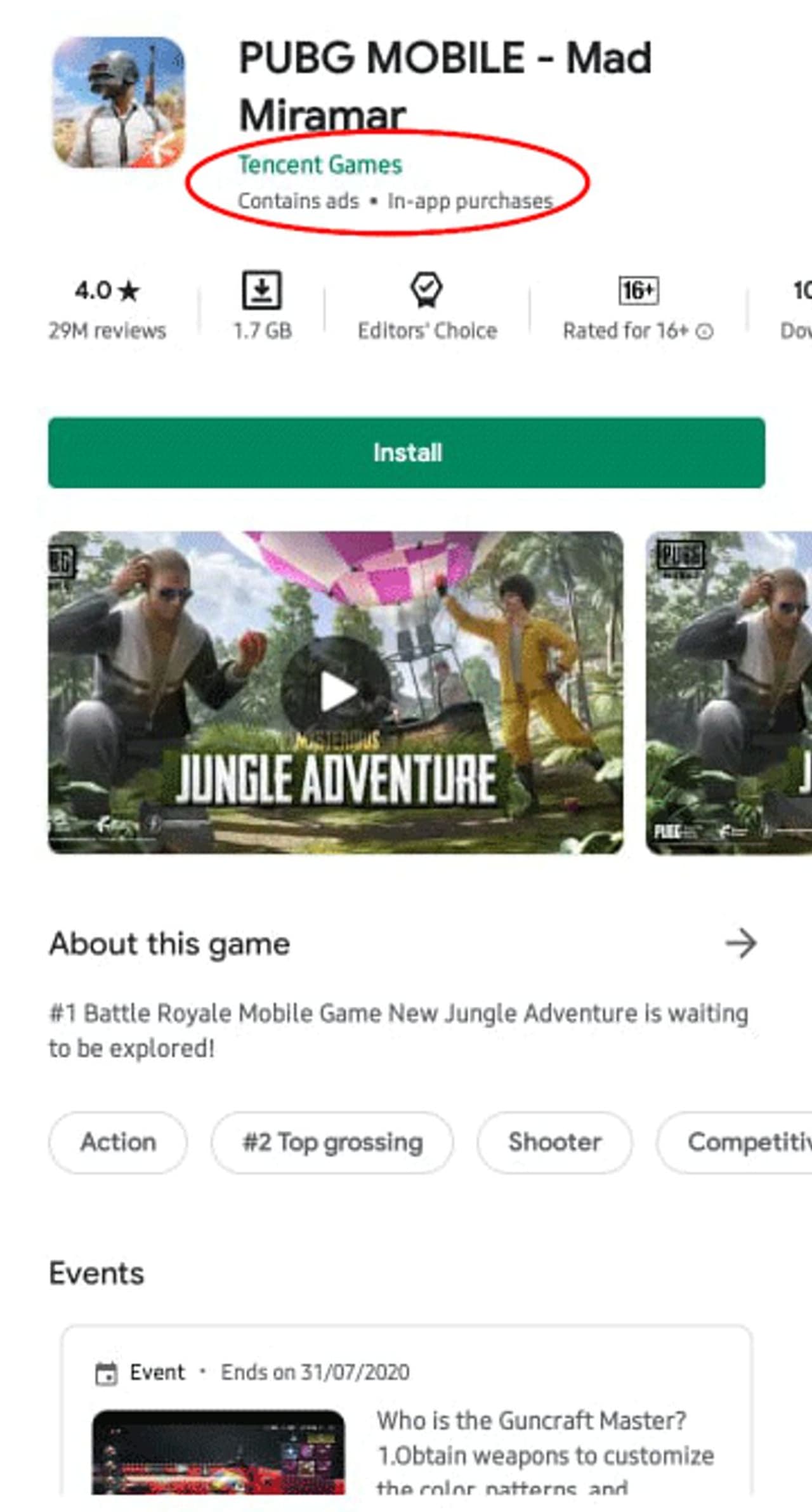 ആളുകള് കരുതുന്നതുപോലെ ചൈനീസ് കമ്പനിയല്ല പബ്ജിയുടെ നിര്മാതാക്കളായ പബ്ജി കോര്പ്പറേഷന്. ദക്ഷിണ കൊറിയന് ഗെയിം നിര്മാതാക്കളായ ബ്ലൂഹോളും പബ്ജി കോര്പ്പറേഷനും സഹകരിച്ചാണ് ഗെയിം നിര്മ്മിച്ചത്. എന്നാല് ഗെയിമിന് ഒരു ചൈനീസ് ബന്ധവുമുണ്ട്. ചൈനീസ് കമ്പനിയായ ടെന്സന്റ് ആണ് ഗെയിമിന്റെ മൊബൈല് വേര്ഷന് തയ്യാറാക്കിയതും വിതരണക്കാരും. പബ്ജി ഇന്ത്യയില് അവതരിപ്പിച്ചത് ടെന്സന്റാണ്. പ്ലേ സ്റ്റോറില് ആപ്പിന് ഒപ്പമുള്ള വിവരങ്ങളില് ഇത് രേഖപ്പെടുത്തിയിട്ടുണ്ട്.
