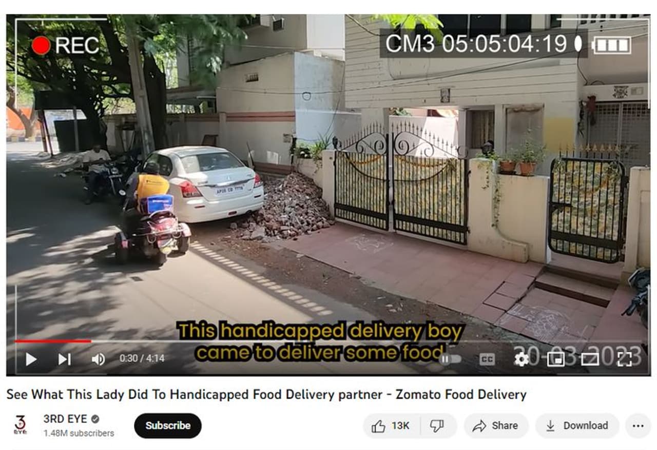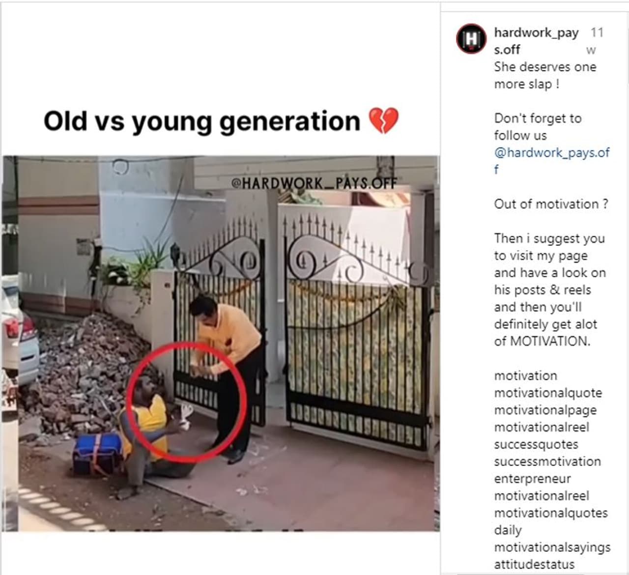 ശാരീരിക വെല്ലുവിളി നേരിടുന്നവര്ക്കുള്ള പ്രത്യേക സ്കൂട്ടറില് ഭക്ഷണപ്പൊതിയുമായി വരികയാണ് ഒരു ഡെലിവറി ബോയി. വാഹനത്തില് നിന്നറങ്ങി ഭക്ഷണവുമായി നിലത്തുകൂടെ നിരങ്ങി അയാള് വീടിന്റെ ഗെയിറ്റിന് അരികിലേക്ക് വരുന്നു. അവിടെ നിന്ന പെണ്കുട്ടി എന്നാല് ആ ഭക്ഷണപ്പൊരി വാങ്ങാന് കൂട്ടാക്കാതെ തര്ക്കിച്ച ശേഷം വലിച്ചെറിയുന്നു. അതേസമയം പിന്നീട് മധ്യവയസ്കനായ ഒരാള് ഇത് കൈപ്പറ്റുകയും ആ പെണ്കുട്ടിയെ വിളിച്ചുവരുത്തി ശകാരിക്കുകയും മുഖത്തടിക്കുകയും ചെയ്യുന്നു. ഇതുകഴിഞ്ഞ് കീശയില് നിന്ന് പണമെടുത്ത് ഡെലിവറി ബോയിക്ക് നല്കി ആശ്വസിപ്പിക്കുകയും ബാഗ് എടുത്ത് വണ്ടിയില് വച്ച് യാത്രയാക്കുകയും ചെയ്യുന്നുണ്ട് അയാള്. പഴയ തലമുറയും പുതിയ തലമുറയും തമ്മിലുള്ള വ്യത്യാസമാണിത് എന്നുപറഞ്ഞാണ് വീഡിയോ ഇന്സ്റ്റഗ്രാമില് പങ്കുവെച്ചിരിക്കുന്നത്. പെണ്കുട്ടിക്ക് ഒരു അടി കൂടി കൊടുക്കണമായിരുന്നു എന്ന് പറയുന്നവരുമുണ്ട്.