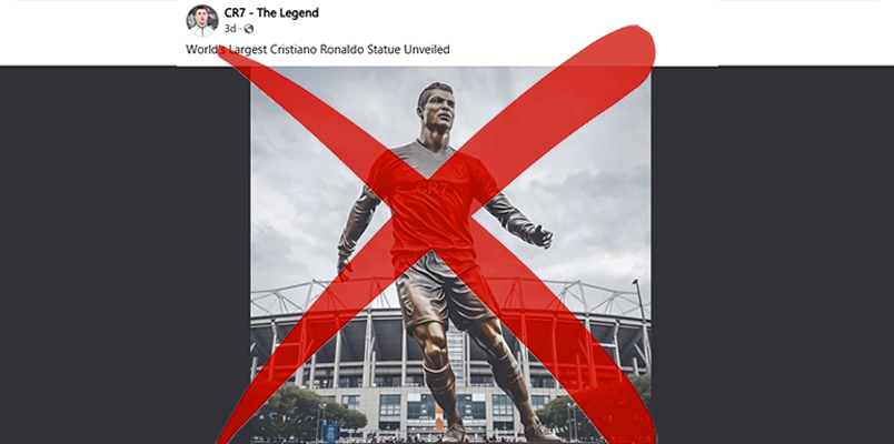 പോര്ച്ചുഗീസ് ഫുട്ബോള് ഇതിഹാസം സിആര്7ന്റെ ഏറ്റവും വലിയ വെങ്കല പ്രതിമ അനാച്ഛാദനം ചെയ്തെന്നാണ് ഫേസ്ബുക്ക് പോസ്റ്റുകള്