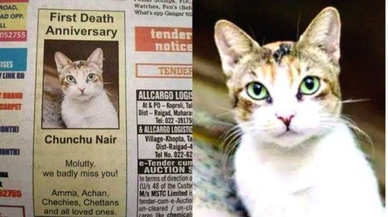 ഓമനിച്ചു വളർത്തിയിരുന്ന കുറിഞ്ഞിപ്പൂച്ചയ്ക്ക് 'ചുഞ്ചു നായർ' എന്ന് പേരിടുകയും, അത് മരിച്ചപ്പോൾ ഓർമ്മ ദിവസം പടം സഹിതം പത്രത്തിൽ ഓർമ്മക്കുറിപ്പ് പ്രസിദ്ധീകരിക്കുകയും ചെയ്തത് വൈറലായിരുന്നല്ലോ. മുംബൈയിലെ ഒരു പ്രമുഖ ഇംഗ്ലീഷ് ദിനപ്പത്രത്തിലാണ് നവി മുംബൈയിൽ സ്ഥിരതാമസമാക്കിയ മലയാളി കുടുംബം പരസ്യം നൽകിയത്. പത്രപ്പരസ്യം നൽകിയതിന് പിന്നാലെ സമൂഹമാധ്യമങ്ങളിൽ വളരെയധികം ട്രോളുകൾ പിറന്നിരുന്നു. മരണത്തിലൂടെ അവിചാരിതമായി തങ്ങളെ വിട്ടുപിരിഞ്ഞ പൂച്ചക്കുറിഞ്ഞിയോടുള്ള തങ്ങളുടെ സ്നേഹത്തെ 'ജാതിസ്പിരിറ്റെ'ന്നു വ്യാഖ്യാനിച്ച് ട്രോൾ ചെയ്തവരോട് സങ്കടത്തോടെ പ്രതികരിച്ചുകൊണ്ട് ആ കുടുംബവും രംഗത്തെത്തിയിരുന്നു.