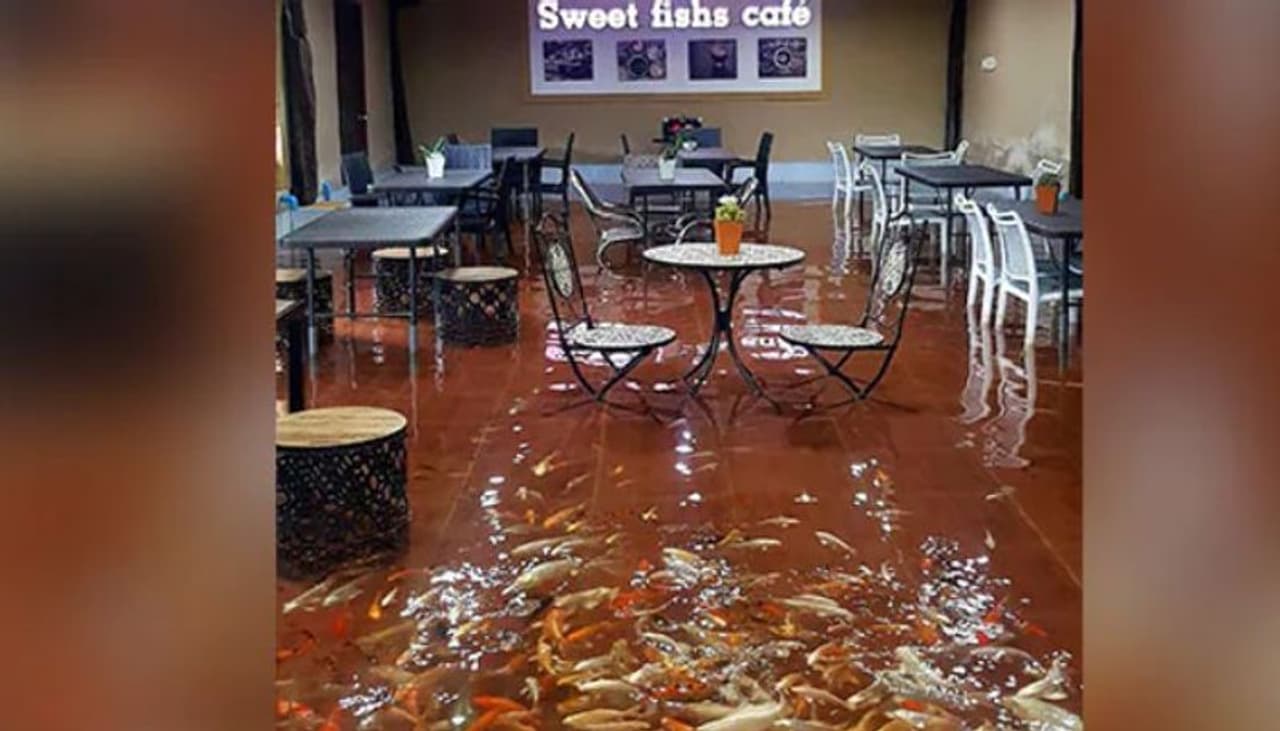 'സ്വീറ്റ് ഫിഷ് കഫേ' എന്ന് റെസ്റ്റോറന്റിലെ ചുമരിൽ എഴുതിയിരിക്കുന്നതും കാണാം. വുഡൻ ഫ്ളോറിൽ കണങ്കാൽ വരെ വെള്ളം നിറച്ചിരിക്കുകയാണ്. വിവിധ നിറത്തിലുള്ള മീനുകൾ നിറയെ വെള്ളത്തിൽ കാണാം. 18 സെക്കന്റുളള വീഡിയോ സൈബര് ലോകത്ത് വൈറലാവുകയും ചെയ്തു. കഫേയ്ക്കകത്ത് ഫിഷ് ടാങ്ക് ഒരുക്കിയ റെസ്റ്റോറന്റിനെ പ്രശംസിച്ചും വിമർശിച്ചും കമന്റുകൾ ഉയരുന്നുണ്ട്.