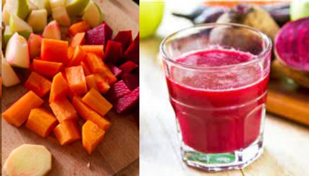 ആപ്പിളും ബീറ്റ്റൂട്ടും ക്യാരറ്റും തൊലികളഞ്ഞ ശേഷം ചെറിയ കഷണങ്ങളായി മുറിക്കണം. ഇനി കുറച്ച് വെള്ളം ചേര്ത്ത് ഇവ മിക്സിയില് അടിച്ചെടുക്കുക. ഇനി ഇതിലേയ്ക്ക് വേണമെങ്കില് ചെറുനാരങ്ങാനീരും ചേര്ക്കാം. തണുപ്പിച്ചോ അല്ലാതെയോ കുടിക്കാം.