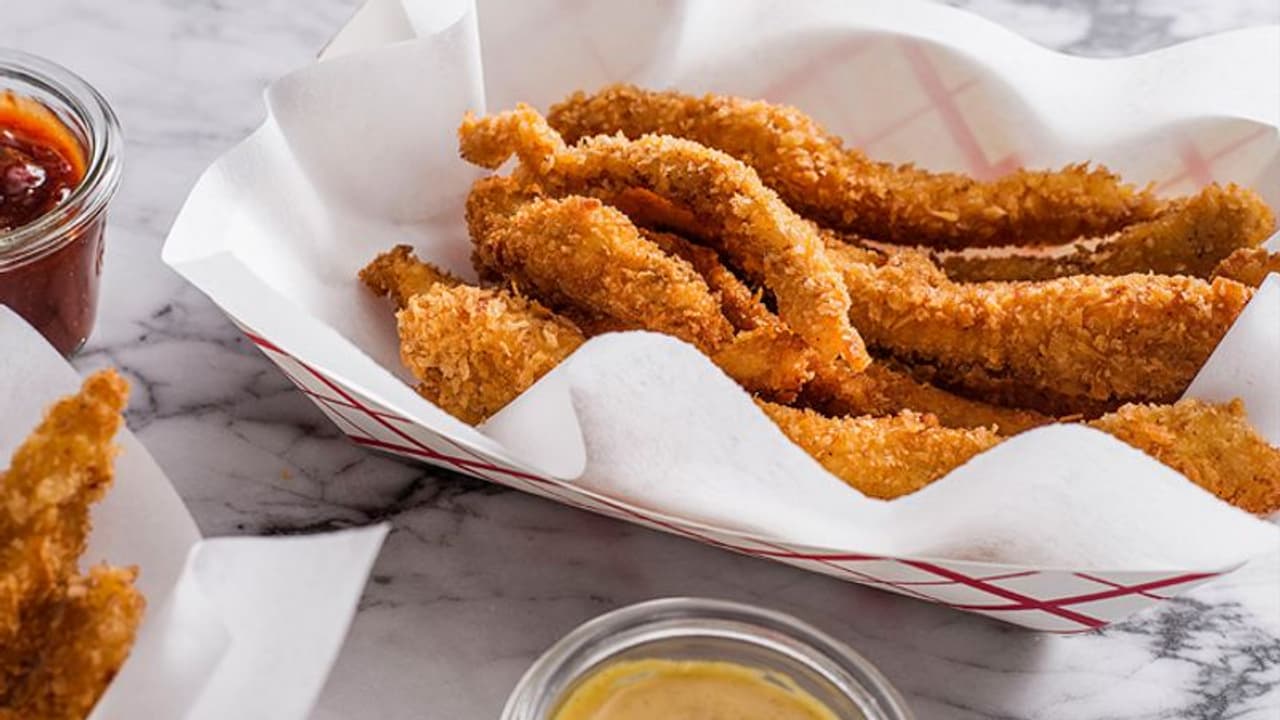 ക്രിസ്പി ചിക്കൻ ഫ്രൈസ് തയ്യാറായി. തക്കാളി സോസ് ചേർത്ത് കഴിക്കാം.