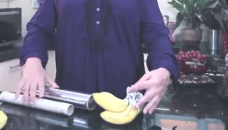 ഇതിനായി അല്പം വീതിയും നീളവുമുള്ള ഒരു കഷ്ണം അലൂമിനിയം ഫോയില് പേപ്പറെടുക്കുക. ഇത് നാലാക്കി മടക്കി വേണം പഴത്തിന്റെ തണ്ടുഭാഗങ്ങള് ഒന്നിച്ച് ചേര്ത്ത് ചുറ്റാന്. ഒന്നല്ല, രണ്ട് ദിവസം വരെ പഴം യാതൊരു കേടും കൂടാതെയിരിക്കും.