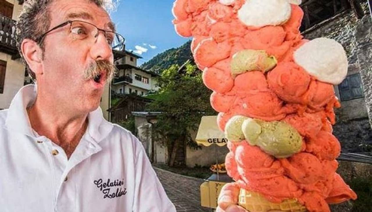 എന്നാല് ഒരു കോണില് 125 സ്കൂപ് ഐസ്ക്രീം അടുക്കിവച്ച് റെക്കോർഡ് നേടിയിരിക്കുകയാണ് ഒരു വിദ്വാന്. ഇറ്റലിക്കാരനായ ദിമിത്രി പാൻസിയേരയാണ് ഈ റെക്കോർഡിനുടമ.