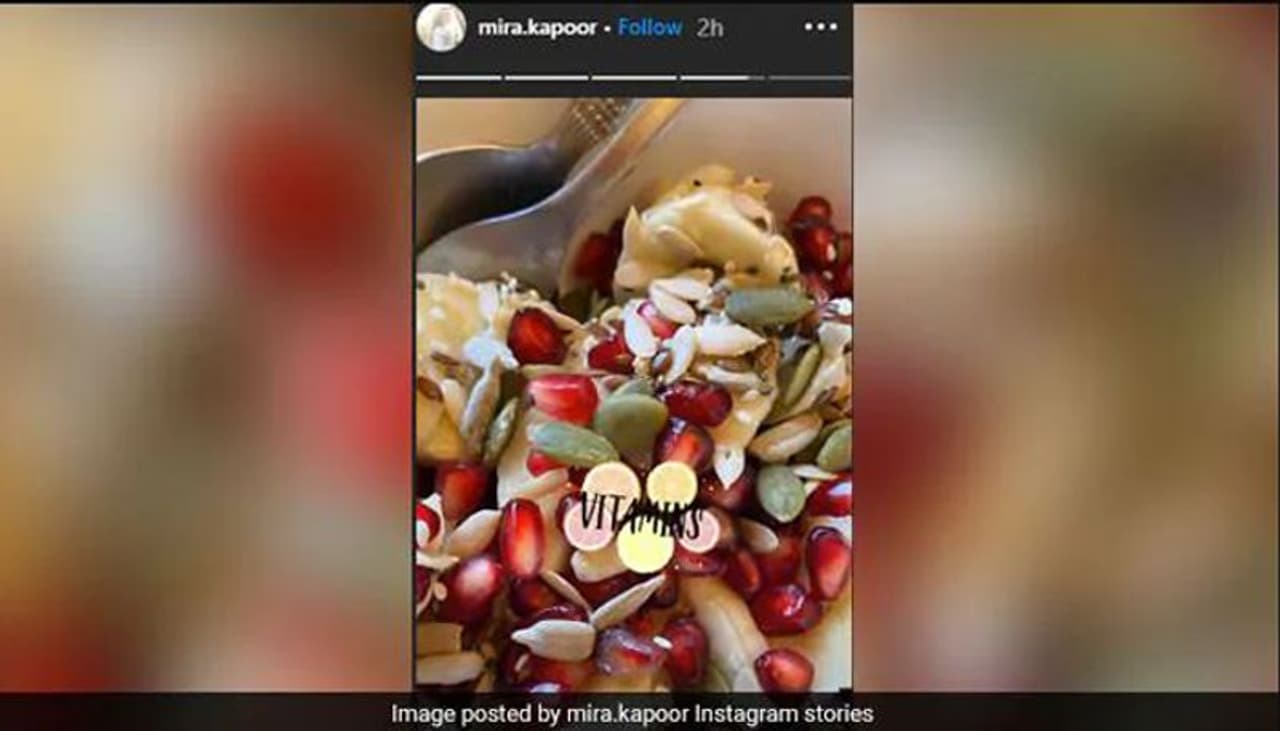 ഷാഹിദ് കപൂറിനും മക്കളായ മിഷയ്ക്കും സെയ്നും ഏറെ ഇഷ്ടമുള്ള ഭക്ഷണമാണ് ഇതെന്ന് മിറ പറയുന്നു. പോംഗ്രെനേറ്റ് സീഡ്സ്, വാഴപ്പഴം, പംകിന് സീഡ്സ്, ചിയ സീഡ്സ്, സണ്ഫ്ളവര് സീഡ്സ് എന്നിവയുടെ മിക്സാണ് ബ്രേക്ക്ഫാസ്റ്റ്. വിറ്റാമിന്സ് എന്നാണ് മിറ ഇതിന് ക്യാപ്ഷന് നല്കിയിരിക്കുന്നത്. ഇവയെല്ലാം വിറ്റാമിനുകളുടെ കലവറയാണല്ലോ.