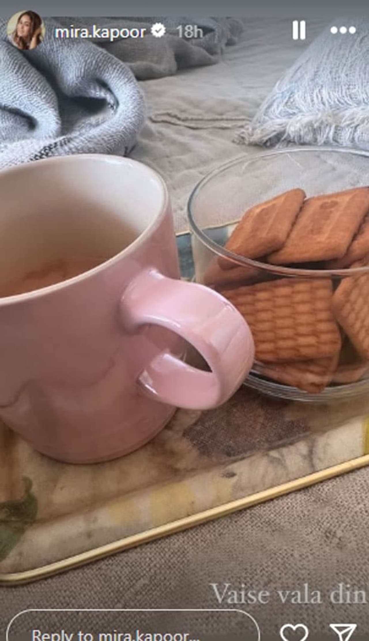 പാർലെ ജി ബിസ്ക്കറ്റുമായുള്ള ഞങ്ങളുടെ ബാല്യകാല പ്രണയത്തെ ഓർമ്മപ്പെടുത്തുന്നു. ഒരു പാർലെ ജി ബിസ്ക്കറ്റ് ചായയോ പാലോ ആവി പറക്കുന്ന കപ്പിൽ മുക്കി കഴിക്കുന്ന സന്തോഷം പലർക്കും പ്രിയപ്പെട്ടതാണ് എന്ന് കുറിച്ച് കൊണ്ടാണ് മീറ സ്റ്റോറി പങ്കുവച്ചത്.