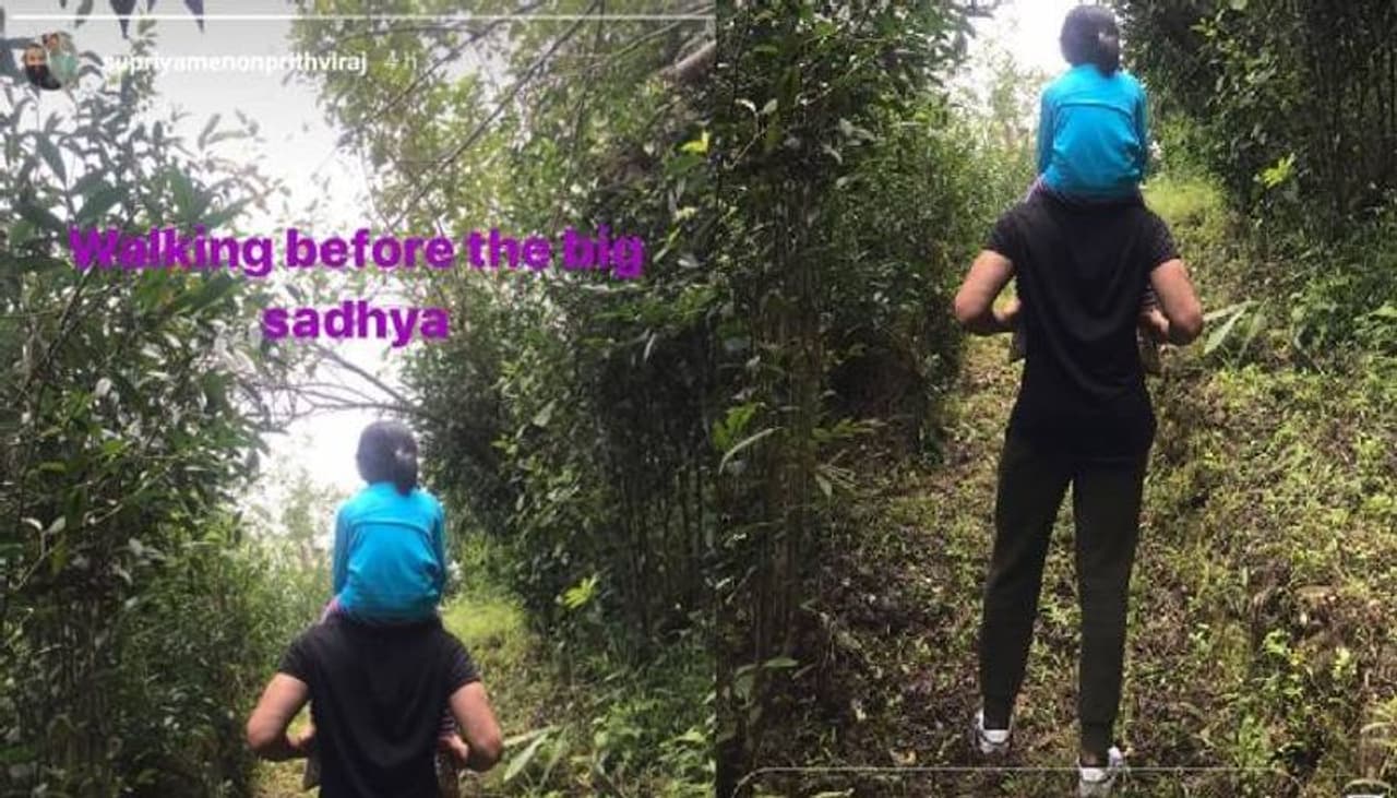 അതിനിടയില് സുപ്രിയ ആകട്ടെ സദ്യ കഴിക്കുന്നതിന് മുന്പ് നടക്കാനിറങ്ങിയ പൃഥ്വിവിന്റെയും അല്ലിയുടെയും ചിത്രമാണ് തന്റെ ഇന്സ്റ്റഗ്രാം സ്റ്റോറിയിലൂടെ ആരാധകര്ക്കായി പങ്കുവച്ചിരിക്കുന്നത്.