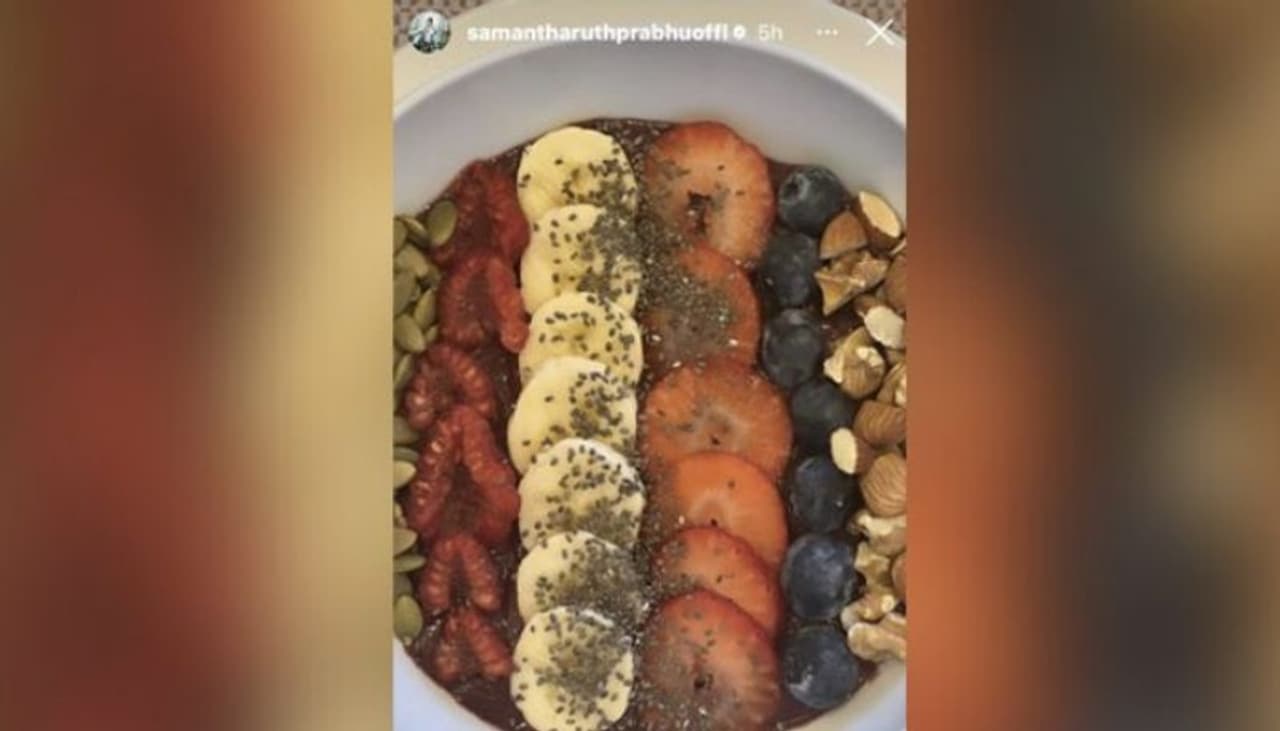 ഇപ്പോഴിതാ തന്റെ പ്രഭാതഭക്ഷണത്തിന്റെ ചിത്രം ഇന്സ്റ്റഗ്രാം സ്റ്റോറിയില് പങ്കുവച്ചിരിക്കുകയാണ് സാമന്ത. പ്രഭാത ഭക്ഷണം എപ്പോഴും പോഷകമൂല്യമുള്ളതായിരിക്കണം എന്നാണ് വിദഗ്ധര് പറയുന്നത്. ഡയറ്റിലും ഫിറ്റ്നസിലും കൃത്യമായ ശ്രദ്ധ പുലര്ത്തുന്ന സാമന്തയുടെ പ്രഭാത ഭക്ഷണവും അത്തരത്തിലൊന്നാണ്. വാഴപ്പഴം, സ്ട്രോബെറി, ബ്ലൂബെറി, ബദാം, പിസ്ത, ചിയാ സീസ്ഡ് എന്നിവ അടങ്ങിയതാണ് സാമന്തയുടെ പ്രഭാത ഭക്ഷണം. വര്ക്കൗട്ടിന് ശേഷം കഴിയ്ക്കാവുന്ന അനുയോജ്യമായ പ്രഭാത ഭക്ഷണം കൂടിയാണിത്.