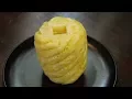 ആദ്യം, സാധാരണ പോലെ തന്നെ രണ്ട് വശവും മുറിച്ച് തൊലിയെല്ലാം വൃത്തിയായി കളഞ്ഞുവയ്ക്കാം. ശേഷം കത്തിയുപയോഗിച്ച് പൈനാപ്പിളിന് മുകളില്, കണ്ണുകളുടെ വശത്തായി ചരിച്ച് വരയാം. മറുവശത്തും ഇതുപോലെ വരയണം. ശേഷം ഇളകി വന്ന കണ്ണുകള് നീക്കം ചെയ്യാം. ഇത് തുടര്ച്ചയായി നീളത്തില് ചെയ്തുപോരണം. ഒടുവില് ഒരു 'സ്പൈറല്' ഘടനയിലാകും പൈനാപ്പിള് ലഭിക്കുക.