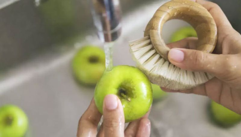 പഴങ്ങളാണെങ്കില് സാധാരണഗതിയില് പൈപ്പിന് ചുവട്ടില് പിടിച്ച് നന്നായി കഴുകിയെടുത്താല് മതിയാകും. അതുപോലെ ആപ്പിള് പോലുള്ള പഴങ്ങളുടെ തൊലിയില് പൊടിയും അഴുക്കുമെല്ലാം പറ്റിപ്പിടിച്ചിരിക്കുന്നത് കാണാറില്ലേ, ഇത് ചെറിയൊരു ബ്രഷുപയോഗിച്ച് ഉരച്ച് കഴുകാം. (ഇതിന് വേണ്ടി മാത്രമായി ബ്രഷ് സൂക്ഷിക്കുക. ഉപയോഗിക്കും മുമ്പ് അല്പം ചൂടുവെള്ളത്തില് ബ്രഷ് കഴുകിയെടുക്കുകയും വേണം.)