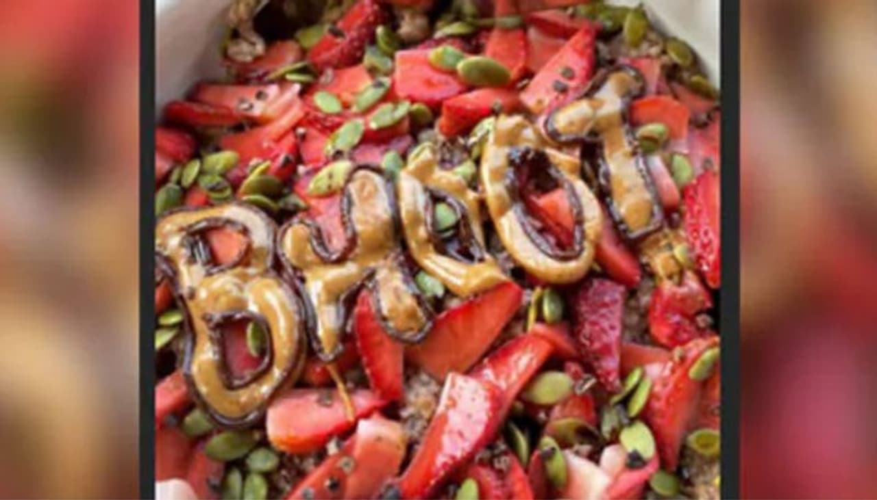 സ്ട്രോബെറി, വിവിധയിനം സീഡുകള്, സോസ് എന്നിവ കൊണ്ടെല്ലാം അലങ്കരിച്ച 'റിച്ച് സലാഡ്' ആണിത്. സാധാരണഗതിയില് പച്ചക്കറികളും ഇത്തരം സലാഡുകളില് ചേര്ക്കും. ഡയറ്റ് പിന്തുടരുന്നവരെ സംബന്ധിച്ച്, ഇത് ഏറ്റവും ഉത്തമമായ 'ബ്രേക്ക്ഫാസ്റ്റ്' തന്നെയാണ്.