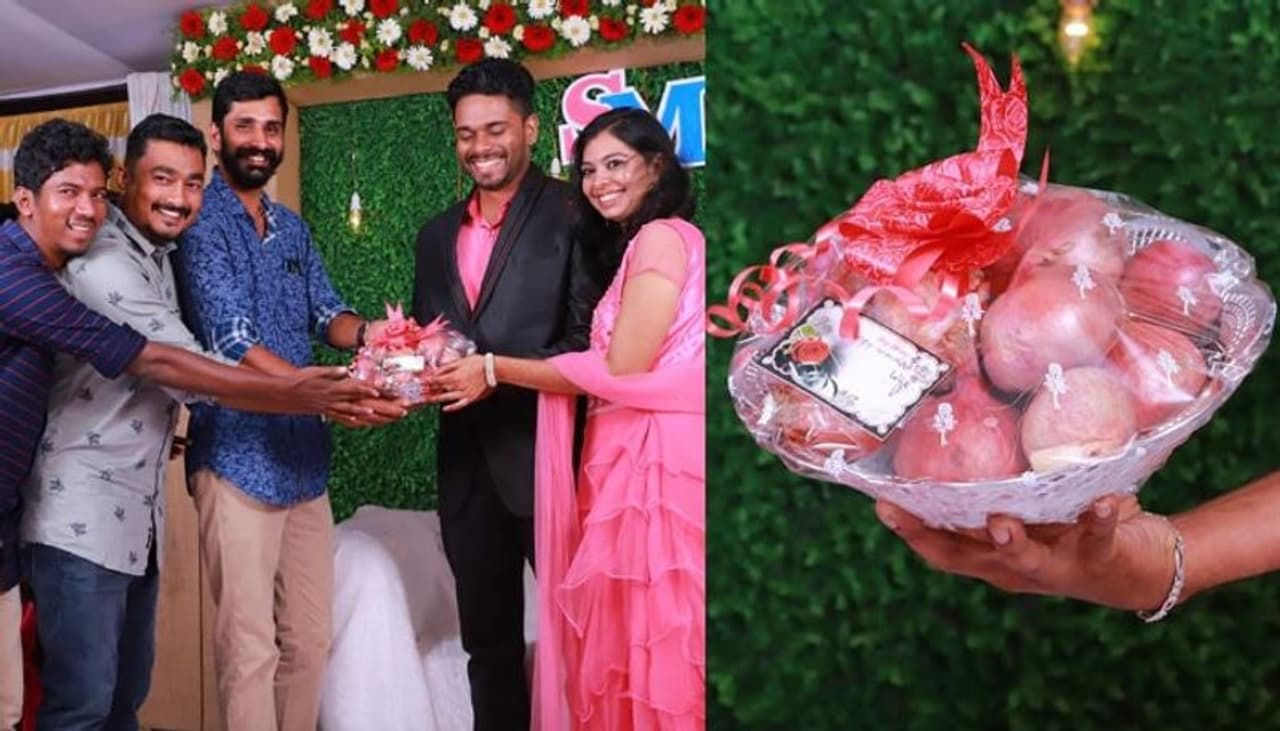 ഇപ്പോള് ഇതാ ആളുകള് വിവാഹത്തിന് വരെ ഉള്ളി സമ്മാനമായി നല്കാന് തുടങ്ങിയിരിക്കുന്നു. അത്രയും വിലയുളള മറ്റൊന്നുമില്ല എന്നാണ് ഇവര് ഇതുകൊണ്ട് അര്ത്ഥമാക്കുന്നതും. ഫേസ്ബുക്കിലെ 'ജിഎന്പിസി' എന്ന പേജിലാണ് ഒരു വിവാഹത്തിന് നവദമ്പതികള്ക്ക് സുഹൃത്തുക്കള് സവാള,ഉള്ളി എന്നിവ സമ്മാനമായി നല്കുന്ന ചിത്രം പോസ്റ്റ് ചെയ്തത്.