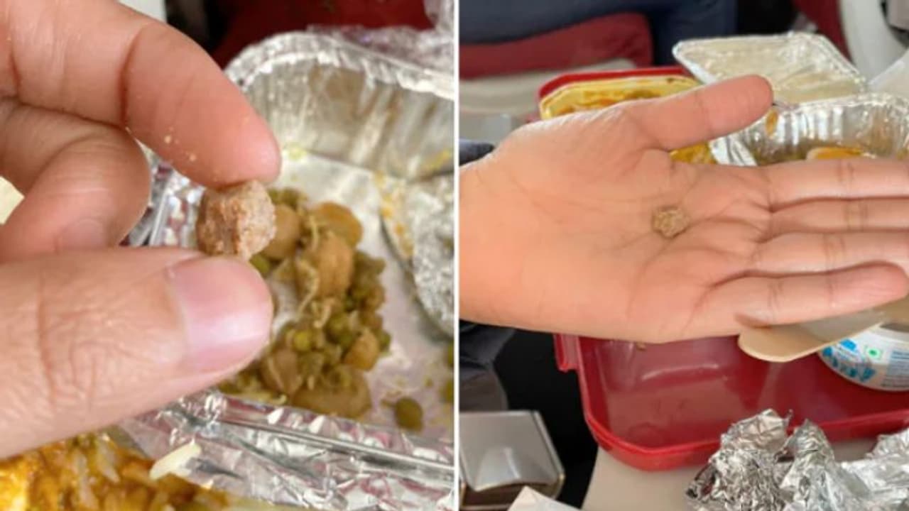 യുവതി പങ്കുവച്ച ചിത്രങ്ങളില് ഭക്ഷണത്തിലെ കല്ല് വ്യക്തമായി കാണാം. എയര് ഇന്ത്യയെ ടാഗ് ചെയ്തു കൊണ്ടാണ് യുവതിയുടെ ട്വീറ്റ്. സംഭവം വൈറലായതോടെ നിരവധി പേരാണ് എയര് ഇന്ത്യയെ വിമര്ശിച്ചുകൊണ്ട് കമന്റുകള് രേഖപ്പെടുത്തിയത്.
