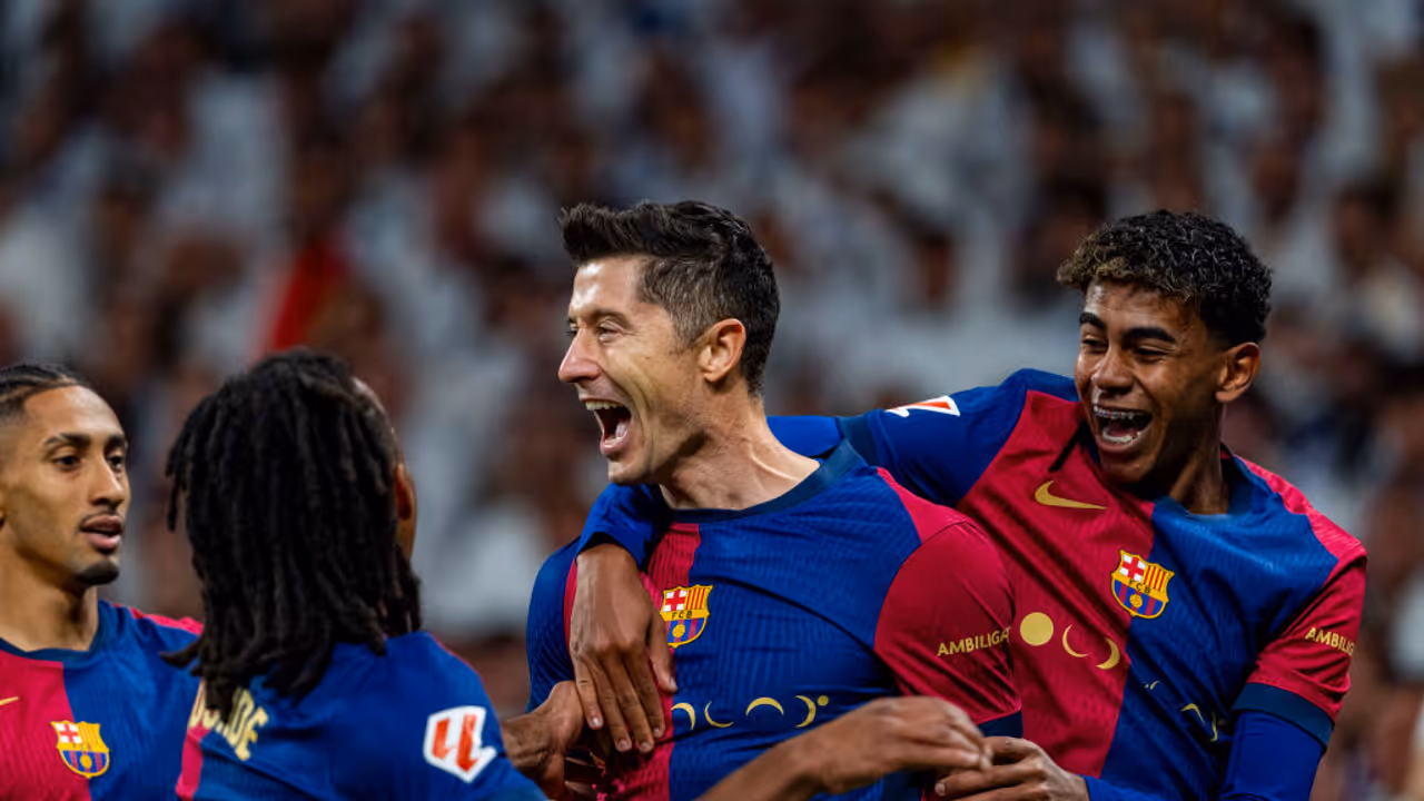 എന്നാല് രണ്ടാം പകുതി ബെർണാബ്യൂവിലെ ഗാലറി കണ്ടത് ബാഴ്സലോണയുടെ തേരോട്ടമായിരുന്നു. 54, 56 മിനുട്ടികളിൽ ലെവൻഡോസ്കിയുടെ ഇരട്ട പ്രഹരം. നെഞ്ച് തകർന്ന് റയൽ ആരാധകർ. തിരിച്ചടിക്കാൻ റയലിന്റെ അതിവേഗ ആക്രമണങ്ങൾ. 66- മിനുട്ടിൽ എംബാപ്പേ വലയിലെത്തിച്ച പന്ത് വീണ്ടും ഓഫ് സൈഡ്. അധികം വൈകാതെ റയലിനെ ഞ്ഞെട്ടിച്ച് ലമീൻ യമാലിന്റെ മാന്ത്രിക ഗോൾ.