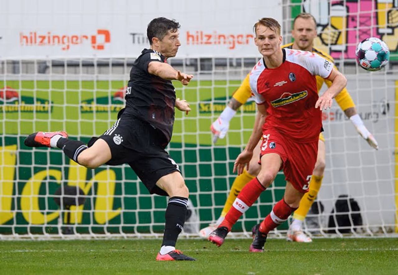 മ്യൂണിക്ക്: ജർമ്മൻ ഫുട്ബോൾ ലീഗിൽ ഒരു സീസണിൽ ഏറ്റവുമധികം ഗോളെന്ന റെക്കോർഡിനൊപ്പമെത്തി ബയേണ് മ്യൂണിക് സ്ട്രൈക്കര് റോബർട്ട് ലെവൻഡോവ്സ്കി. സീസണിലെ 40-ാം ഗോളാണ് എസ്സി ഫ്രീ ബെർഗിനെതിരെ ലെവൻഡോവ്സ്കി നേടിയത്.
