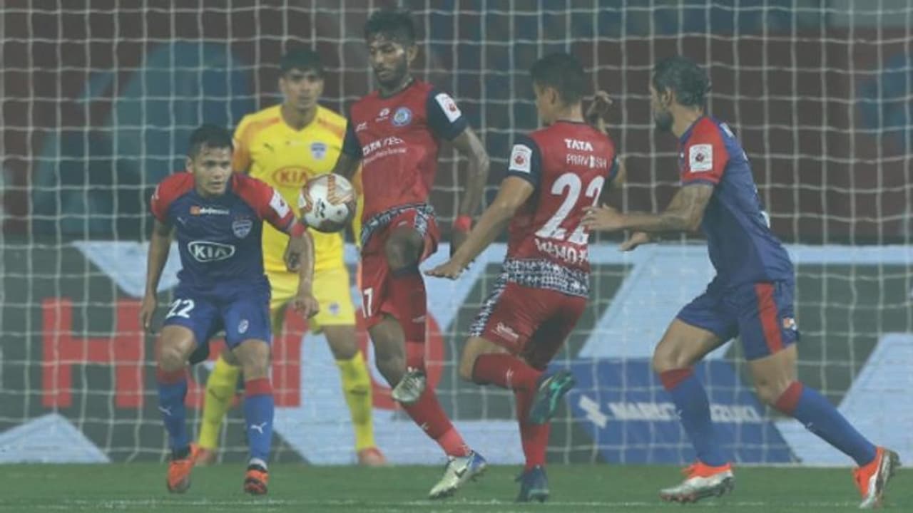 ഇന്ത്യന് സൂപ്പര് ലീഗില് നിലവിലെ ചാംപ്യന്മാരായ ബംഗളൂരു എഫ്സിക്ക് തുടര്ച്ചയായ മൂന്നാം സമനില. ജംഷഡ്പൂര് എഫ്സിയാണ് സുനില് ഛേത്രിയുടെ നേതൃത്വത്തിലുള്ള സംഘത്തെ ഗോള്രഹിത സമനിലയില് തളച്ചത്.
