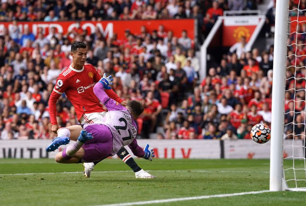 ഗോള്രഹിതമായ ആദ്യപകുതിക്കൊടുവില് ഇഞ്ചുറി ടൈമിലായിരുന്നു റൊണാള്ഡോയുടെ ഗോള്. മേസണ് ഗ്രീന്വുഡിന്റെ തകര്പ്പന് ഗ്രൗണ്ട് ഷോട്ട് തടുത്തിടുന്നതില് ന്യൂകാസില് ഗോള്കീപ്പര് ഫ്രെഡ്ഡി വുഡ്മാന് പറ്റിയ കൈപ്പിഴയാണ് റൊണാള്ഡോയുടെ ഗോളില് കലാശിച്ചത്. ഗോള് കീപ്പറുടെ കൈയില് തട്ടി തെറിച്ച പന്ത് പോസ്റ്റിന് മുന്നിലുണ്ടായിരുന്ന റൊണാള്ഡോ അനായാസം വലയിലാക്കി.