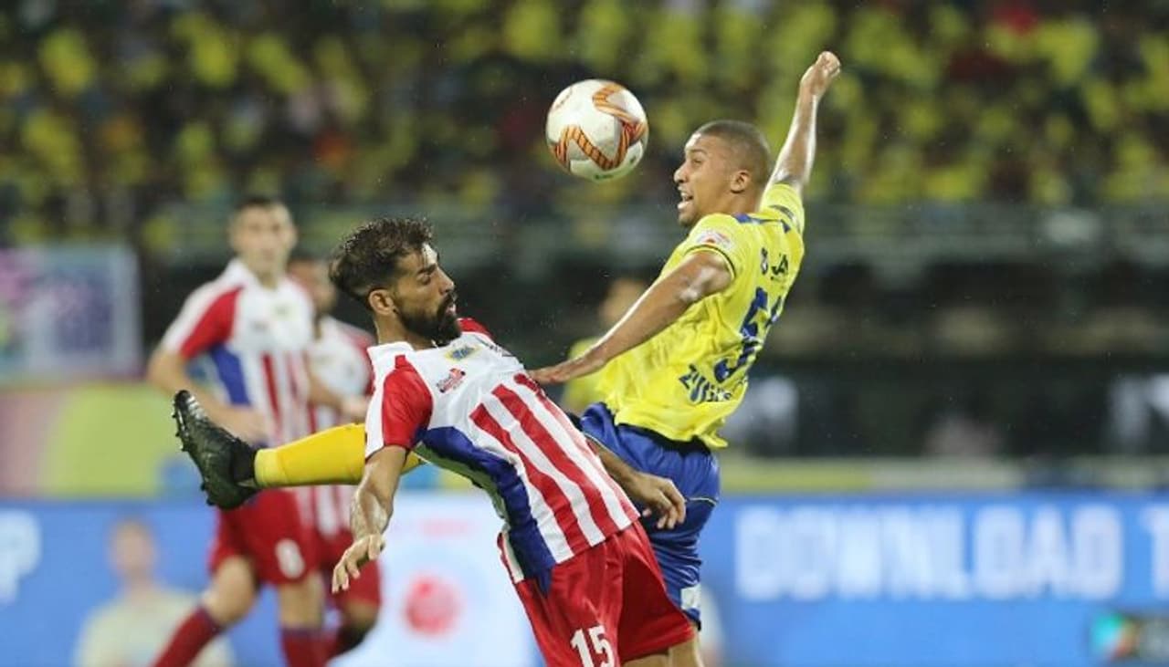 ആക്രമണവും പ്രത്യാക്രമണവും മൂന്ന് ഗോളുകളും പിറന്ന ആദ്യ പകുതി ഇന്ത്യന് എല് ക്ലാസിക്കോയുടെ കരുത്തുകാട്ടി. സീസണിലെ ആദ്യ ഗോള് ആറാം മിനുറ്റില് കുറിച്ച് എടികെ ബ്ലാസ്റ്റേഴ്സിനെ വിറപ്പിച്ചു. സന്ദേശ് ജിംഗാനില്ലാത്ത പ്രതിരോധത്തിന് വലിയ മുന്നറിയിപ്പ് നല്കിയ മിന്നല് ഗോള്. ആഗസിന്റെ പാസില് നിന്ന് മക്ഹ്യൂവിന്റെ തകര്പ്പന് വോളി ബിലാലിനെ മറികടന്ന് വലയില് വീഴുകയായിരുന്നു.