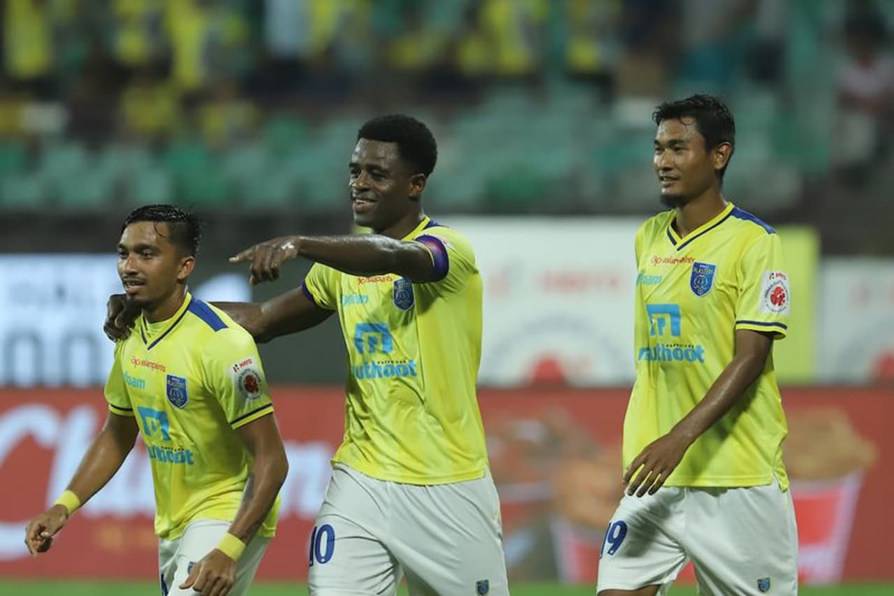 മൂന്നാമത്തെ ഗോളിനും അധികം കാത്തിരിക്കേണ്ടിവന്നില്ല. ഹാളീചരൺ നർസാറിയുമായുള്ള നീക്കത്തിനൊടുവിൽ മെസി ബൗളി വല കുലുക്കി. ആദ്യപകുതി ആഘോഷത്തോടെ ബ്ലാസ്റ്റേഴ്സ് അവസാനിപ്പിച്ചു.