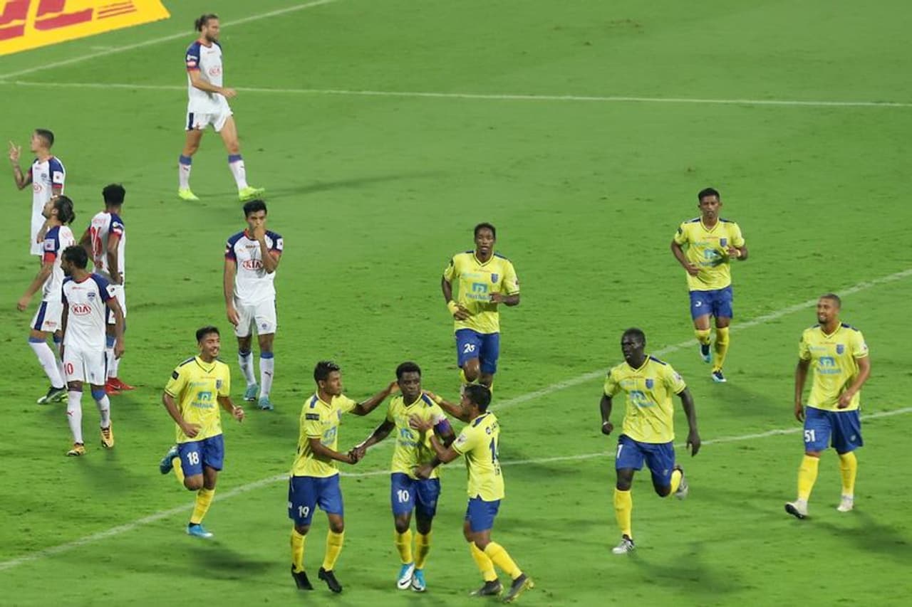 പതിനാറാം മിനിറ്റില് ഡേഷോം ബ്രൗണിന്റെ ഗോളില് ബംഗലൂരു മുന്നിലെത്തിയപ്പോള് പതിവ് തിരക്കഥ ആവര്ത്തിക്കുമെന്ന് കരുതിതയാണ്. എന്നാല് ആദ്യപകുതി തീരാന് മിനിറ്റുകള് മാത്രം ബാക്കിയിരിക്കെ ഒഗ്ബെച്ചെ ബ്ലാസ്റ്റേഴ്സിന്റെ സമനില സമ്മാനിച്ചു.