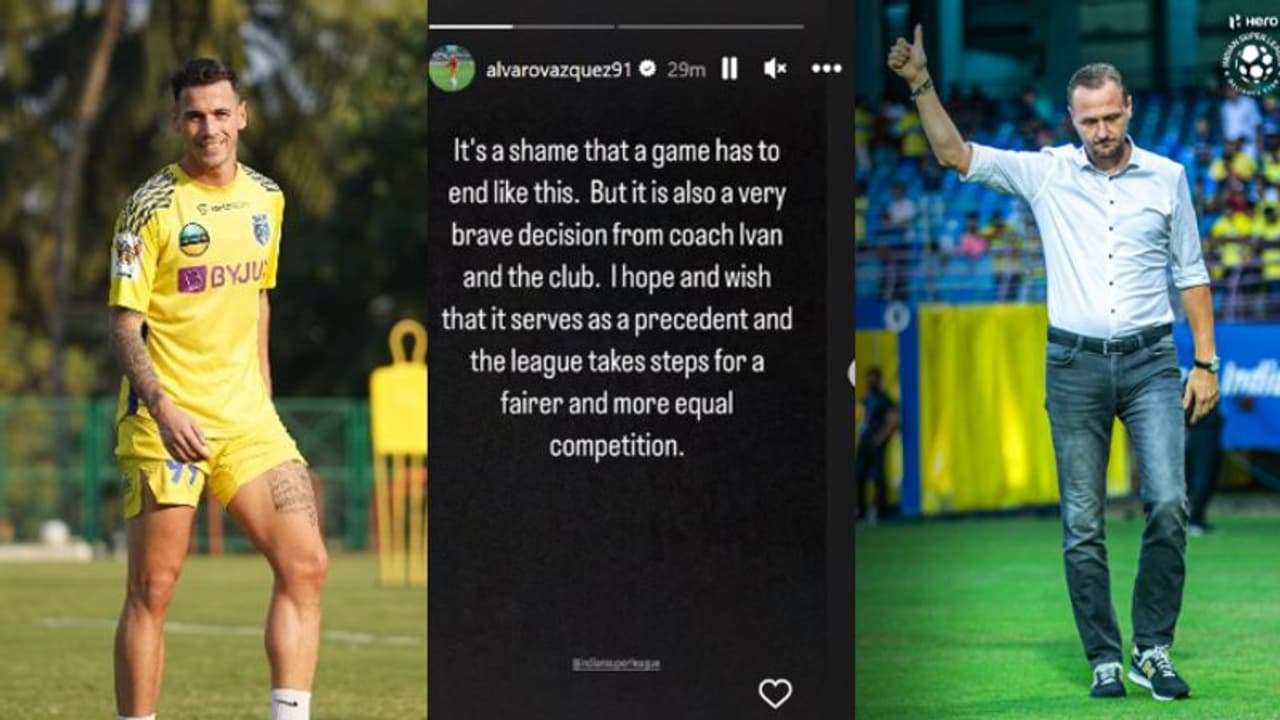 ഐഎസ്എല്ലിലെ റഫറീയിങ്ങനെ കുറിച്ച് കാലങ്ങളായി അപവാദം നിലനില്ക്കേയാണ് ഇവാന് വുകോമനോവിച്ചിന്റെ തീരുമാനത്തെ ധീരം എന്ന് വിശേഷിപ്പിച്ച് ബ്ലാസ്റ്റേഴ്സ് മുന് താരം കൂടിയായ ആല്വാരോ വാസ്ക്വെസ് രംഗത്തെത്തിയത്. നിലവില് എഫ്സി ഗോവയുടെ സ്ട്രൈക്കറായ വാസ്ക്വെസ് 2021-22 സീസണില് കേരള ബ്ലാസ്റ്റേഴ്സിനായി കളിച്ചിട്ടുണ്ട്. കഴിഞ്ഞ സീസണില് ബ്ലാസ്റ്റേഴ്സിനെ ഫൈനലില് എത്തിക്കുന്നതില് നിർണായക പങ്കുവഹിച്ചു. ബ്ലാസ്റ്റേഴ്സിന്റെ മഞ്ഞക്കുപ്പായത്തില് സ്പാനിഷ് സ്ട്രൈക്കർ 23 കളികളില് എട്ട് ഗോളുകളും രണ്ട് അസിസ്റ്റും നേടിയിരുന്നു. വാസ്ക്വെസ് 2021 ഓഗസ്റ്റ് 30നാണ് കേരള ബ്ലാസ്റ്റേഴ്സുമായി ഒരു വർഷത്തെ കരാറിലെത്തിയത്. എടികെ മോഹന് ബഗാനെതിരായ മത്സരത്തിലൂടെ ഐഎസ്എല്ലില് അരങ്ങേറി. മെയ് 2022 വരെ താരം കേരള ബ്ലാസ്റ്റേഴ്സിന് ഒപ്പമുണ്ടായിരുന്നു. ശേഷം ജൂണ് 24ന് എഫ്സി ഗോവയുമായി ആല്വാരോ വാസ്ക്വെസ് രണ്ട് വർഷത്തെ കരാറില് ഒപ്പിടുകയായിരുന്നു. വാസ്ക്വെസിനെ റാഞ്ചാന് മറ്റു ഐഎസ്എല് ക്ലബുകളായ ചെന്നൈയിന് എഫ്സിയും എടികെ മോഹന് ബഗാനും ശ്രമിച്ചിരുന്നു.