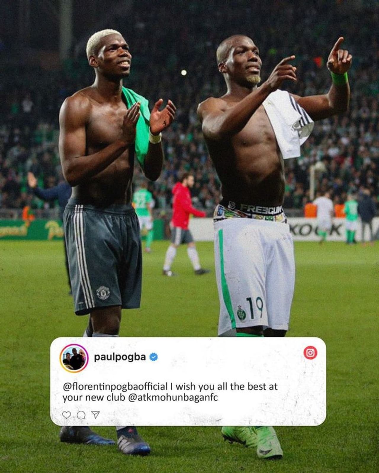എടികെ മോഹന് ബഗാനിൽ ചേരുന്ന സഹോദരന് ഫ്ലോറന്റീന് ആശംസകള് നേര്ന്ന് സൂപ്പര് താരം പോൾ പോഗ്ബ