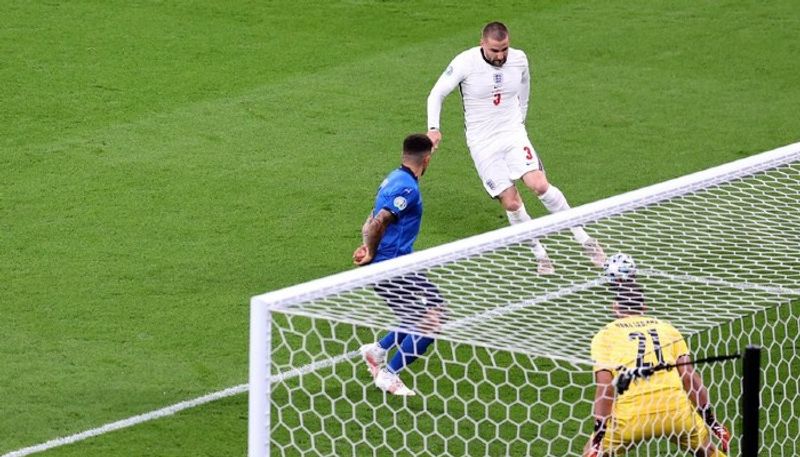 രണ്ടാം മിനിറ്റില് ഒരു കൗണ്ടര് അറ്റാക്കില് നിന്നാണ് ഇംഗ്ലണ്ട് വല കുലുക്കുന്നത്. കോര്ണര് കിക്കില് നിന്നും വീണുകിട്ടിയ പന്തുമായി മുന്നേറിയ ഹാരി കെയ്ന് വലത് വിംഗര് കീറണ് ട്രിപ്പിയറിലെക്ക്. ഇറ്റാലിയന് ബോക്സിലേക്ക് കടക്കും മുമ്പ് അത്ലറ്റികോ മാഡ്രിഡ് താരത്തിന്റെ പാസ് ഷോ സ്വീകരിച്ചു. മാര്ക്ക് ചെയ്യപ്പെടാതെ നില്ക്കുകയായിരുന്ന ഷോ നിറയൊഴിച്ചു. ഇറ്റാലിയന് ഗോള് കീപ്പര് ജിയാന്ലുഗി ഡോണറുമയ്ക്ക് കാഴ്ച്ചകാരനാവാനെ കഴിഞ്ഞുള്ളൂ.
