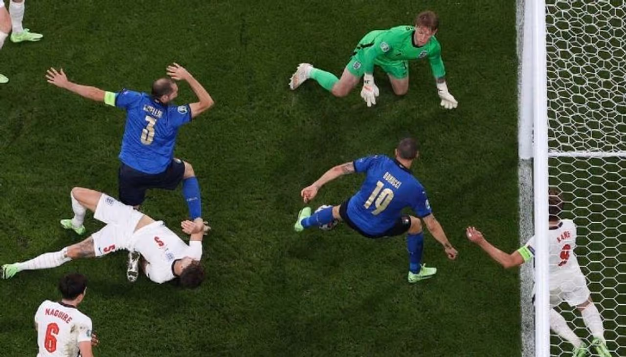 നിശ്ചിത സമയത്തും അധിക സമയത്തും ഗോള് നില 1-1. രണ്ടാം മിനിറ്റില് ലൂക് ഷോ ഇംഗ്ലണ്ടിനെ മുന്നിലെത്തിച്ചു. ഒറ്റ ഗോളില് കടിച്ചുതൂങ്ങാനുള്ള ഇംഗ്ലണ്ടിന്റെ ശ്രമം ലിയോണാര്ഡൊ ബൊനൂച്ചിയുടെ ഗോളില് അവസാനിച്ചു. പെനാല്റ്റി ഷൂട്ടൗട്ടില് ഇറ്റലിക്ക് 3-2ന്റെ ജയം.