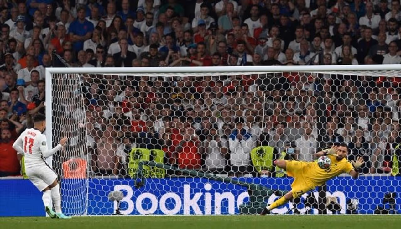 നാലാം കിക്കെടുത്ത ഇംഗ്ലീഷ് താരം ജെയ്ഡണ് സാഞ്ചോയുടെ കിക്ക് ഇറ്റാലിയന് കീപ്പര് ഡോണറുമ രക്ഷപ്പെടുത്തി. ഇറ്റലിയുടെ അവസാന കിക്കെടുക്കാന് വന്നത് ജോര്ജിഞ്ഞോ. ഗോള്വര കടന്നാല് ഇറ്റലിക്ക് ജയമുറപ്പിക്കാം. എന്നാല് പിക്ഫോര്ഡ് ഒരിക്കല്കൂടി തുണയായി. ഇംഗ്ലണ്ടിന്റെ അവസാന കിക്കെടുക്കാനുള്ള അവസരം ബുകായ സാകയ്ക്കായിരുന്നു. ആഴ്സനല് താരത്തിന്റെ കിക്ക് തട്ടിയകറ്റി ഡോണറുമ ഇറ്റലിക്ക് രണ്ടാം യൂറോ കിരീടം സമ്മാനിച്ചു.