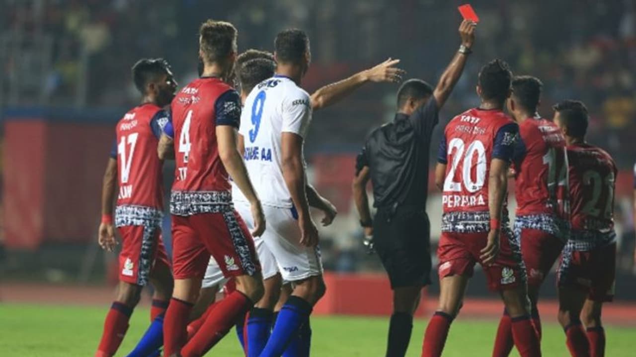 പത്ത് പേരുമായി ചുരുങ്ങിയെങ്കിലും ആതിഥേയര് ആക്രമിച്ചുതന്നെ കളിച്ചു. ഇതിന്റെ ഫലമായി മത്സരത്തിന്റെ 85ാം മിനിറ്റില് സെര്ജിയോ കാസ്റ്റിലിലൂടെ ജംഷഡ്പൂര് വിജയഗോള് നേടി. നാളെ എഫ് സി ഗോവ, ചെന്നൈയിന് എഫ്സിയെ നേരിടും.